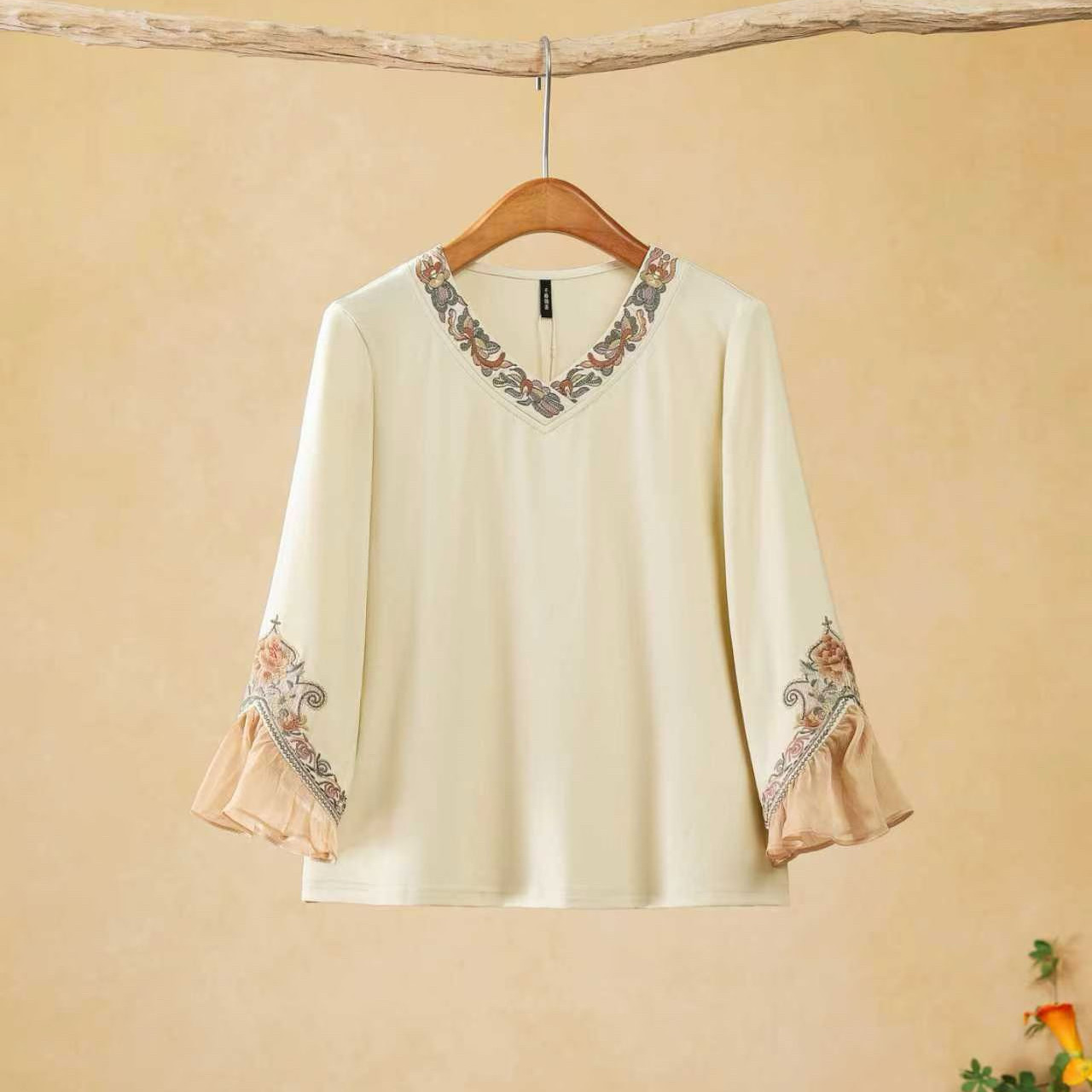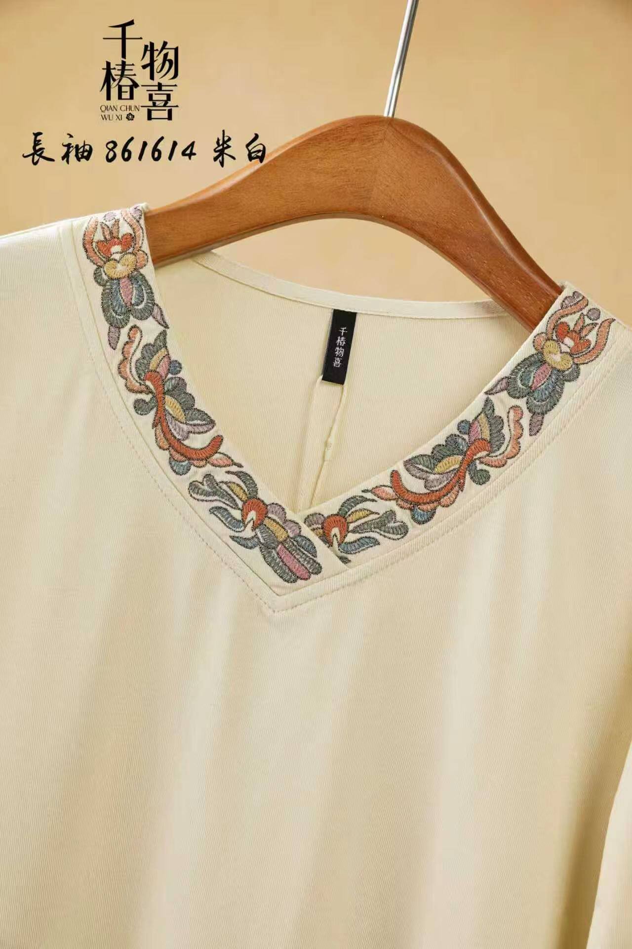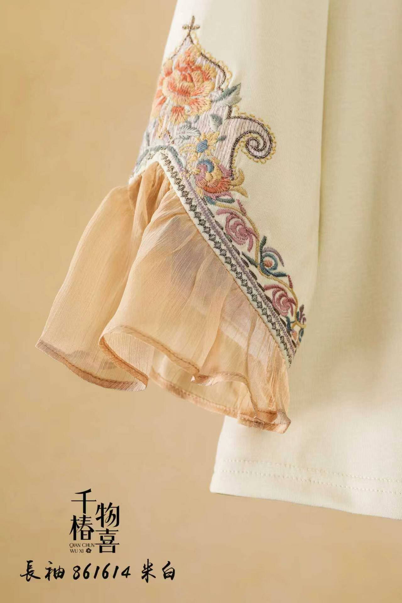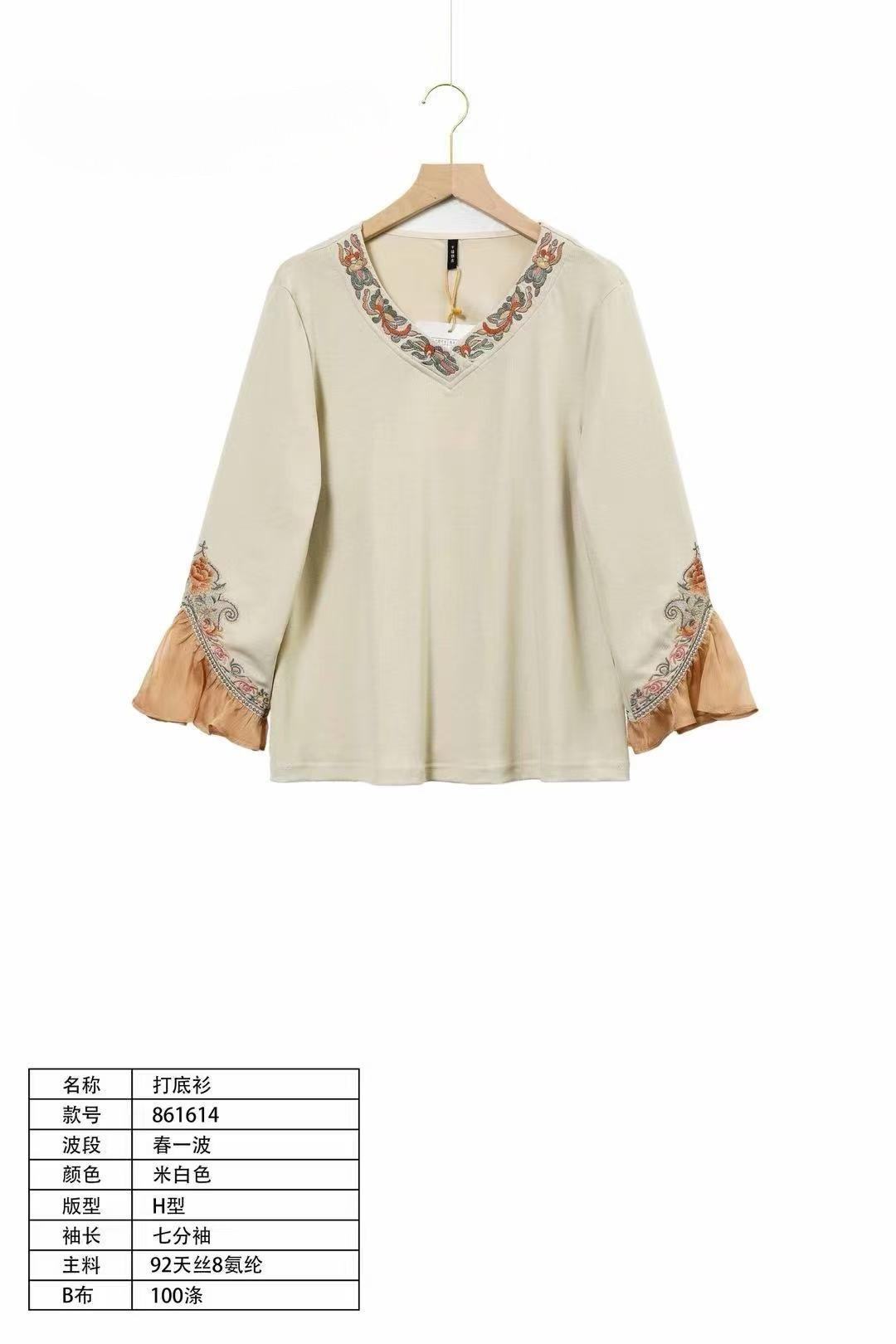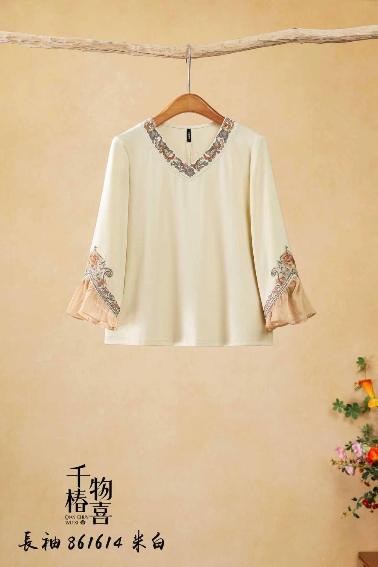--------------------- 喇叭袖刺绣T恤女千椿物喜2026春夏新款七分袖民族风打底衫上衣 【原售价】364元 【现售价】279元 【推荐理由】