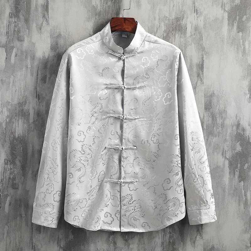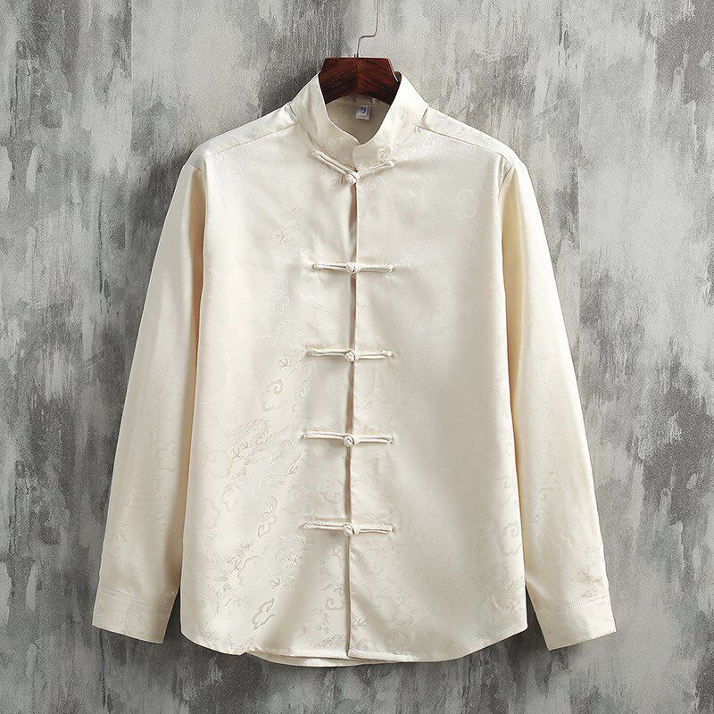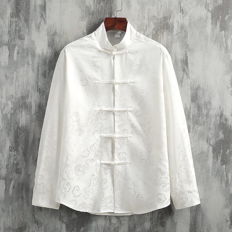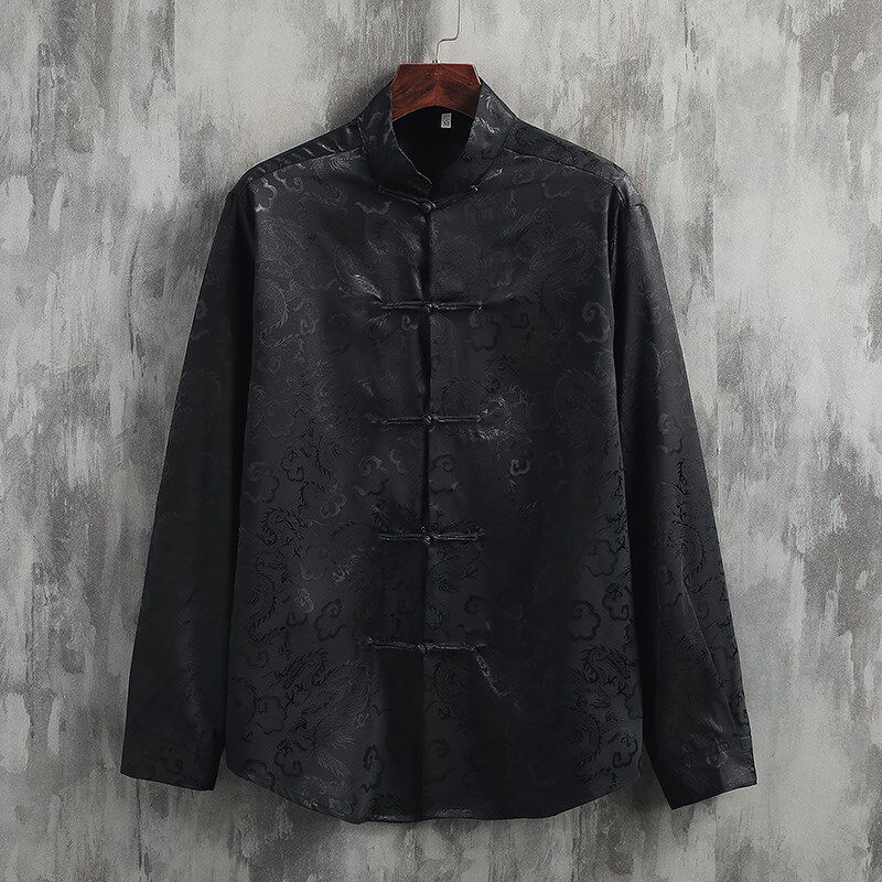 --------------------- 新中式穿搭 中国风男装绸缎龙纹唐装长袖衬衫 复古 提花 国潮衬衣 【原售价】270元 【现售价】270元 【推荐理由】