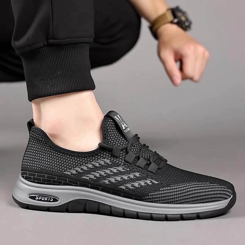 国欢荷莱休闲运动鞋时尚潮流百搭网面男鞋透气低帮系带中年健步