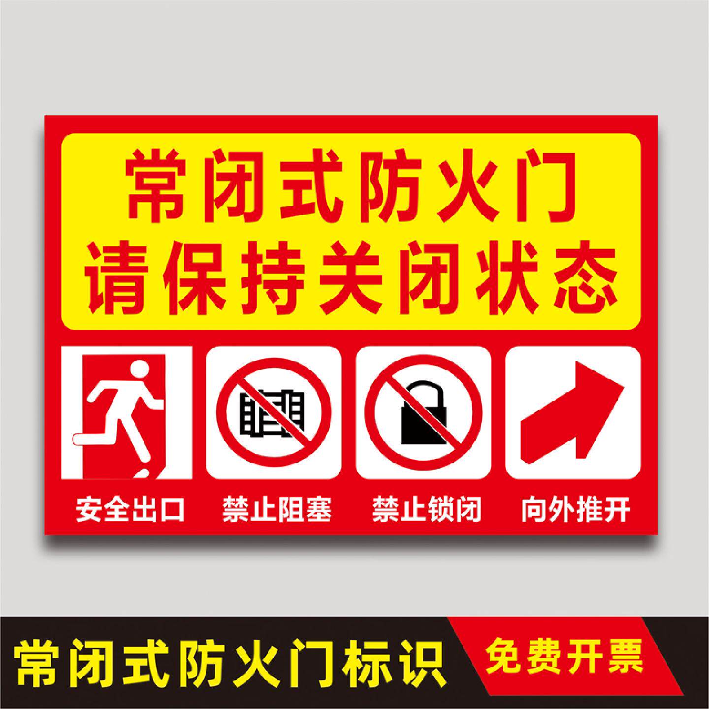 常闭式防火门标识贴纸 消防通道提示牌标识 PP背胶警示贴纸 防火