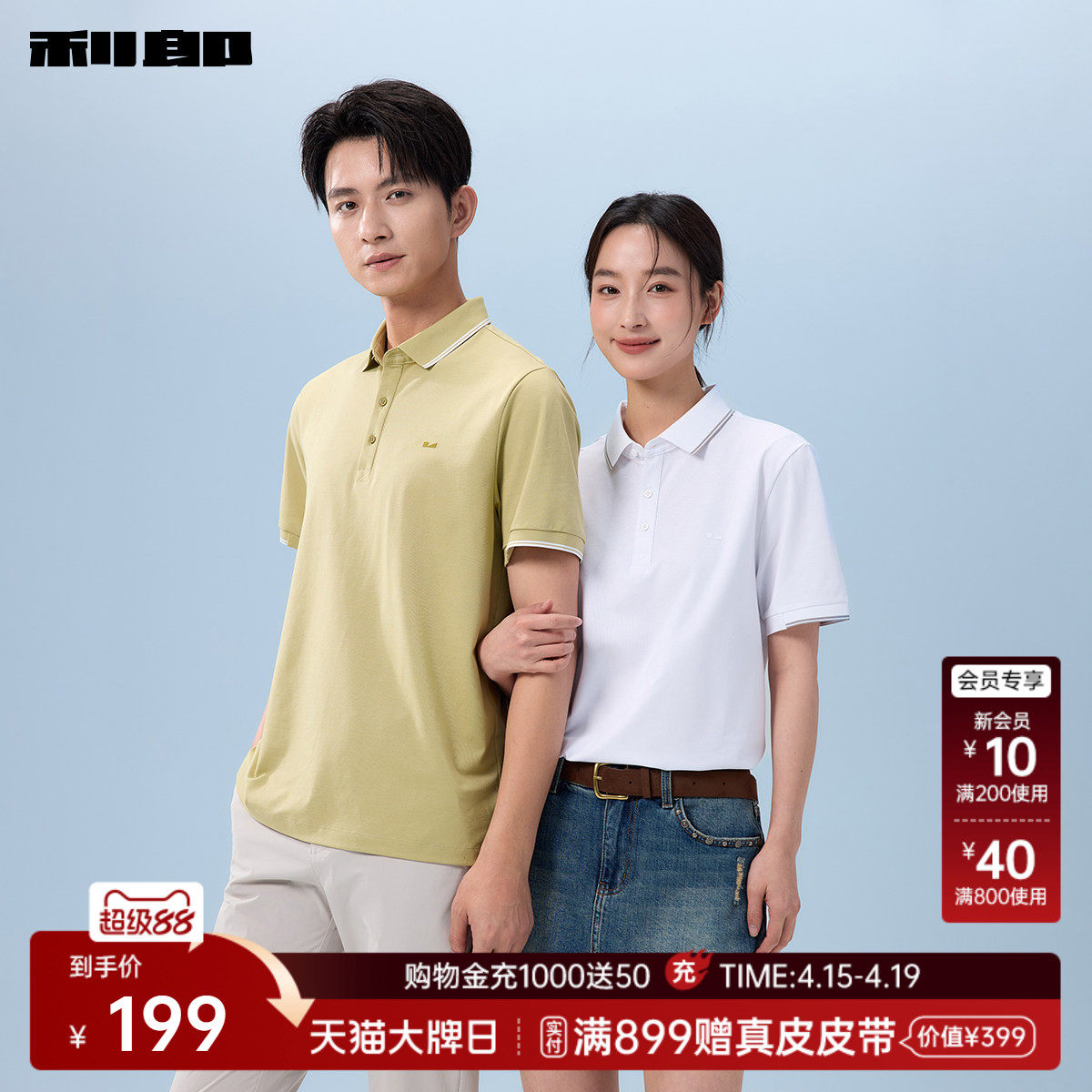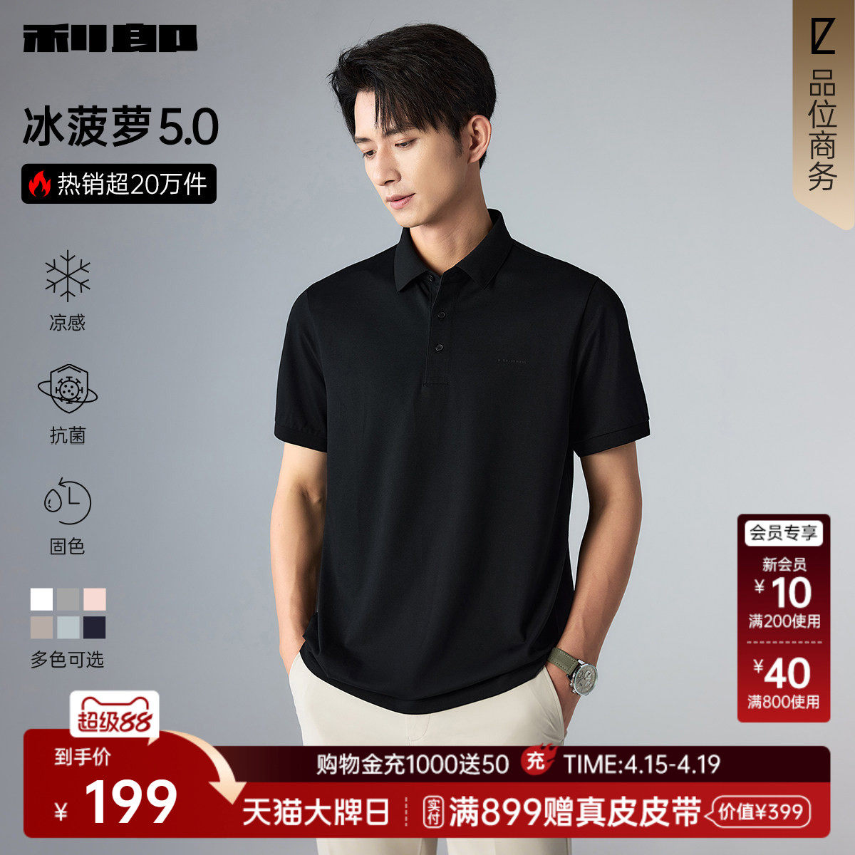 --------------------- 【冰菠萝】利郎官方 凉感短袖Polo衫男士2026夏季翻领T恤衫情侣装 【原售价】599元 【现售价】199元 【推荐理由】