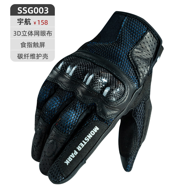 怪兽公园手套摩托车春秋男女骑行手套复古碳纤维机车手套网眼防摔
