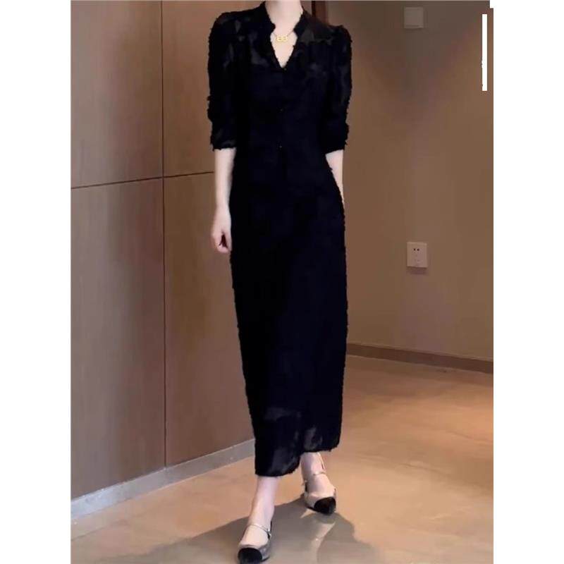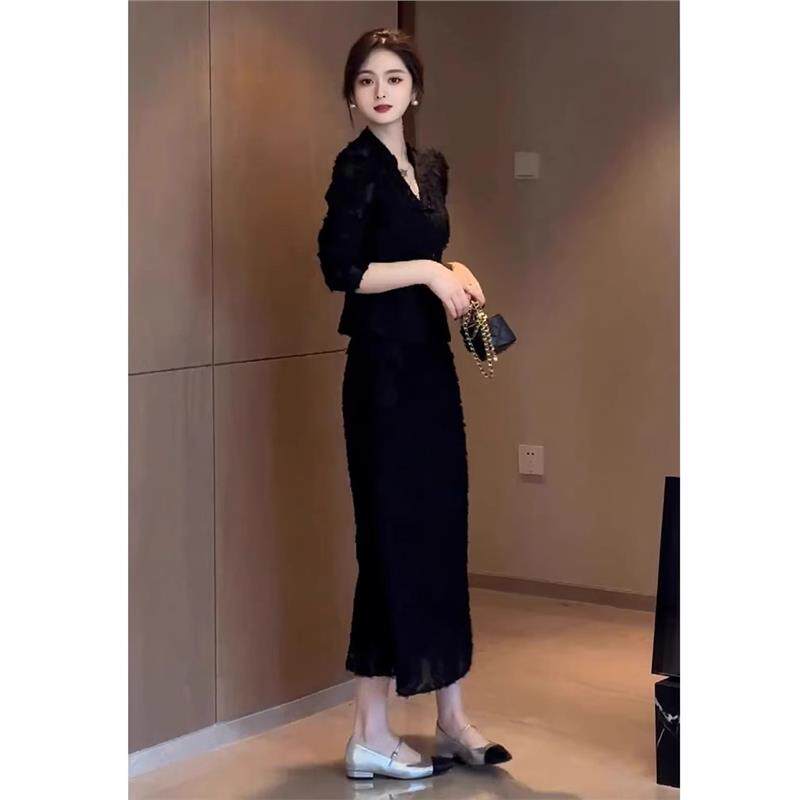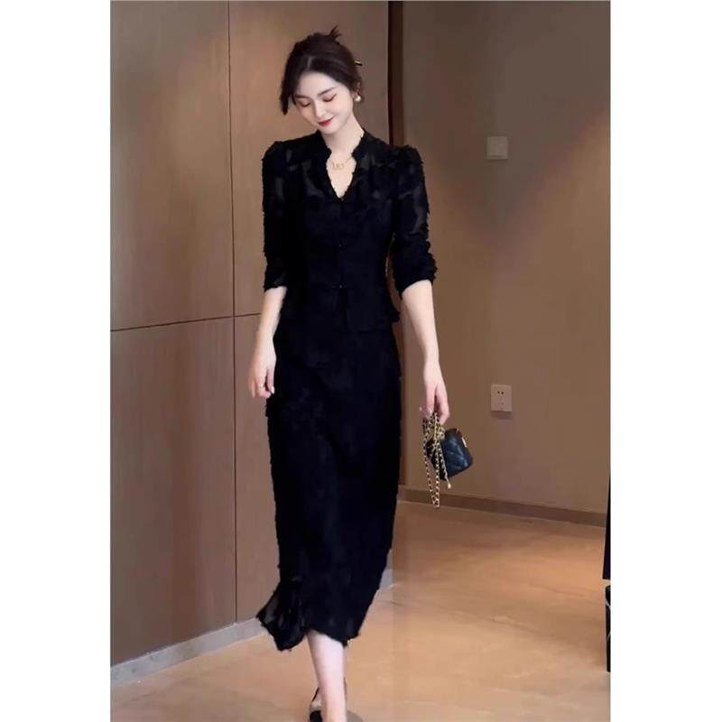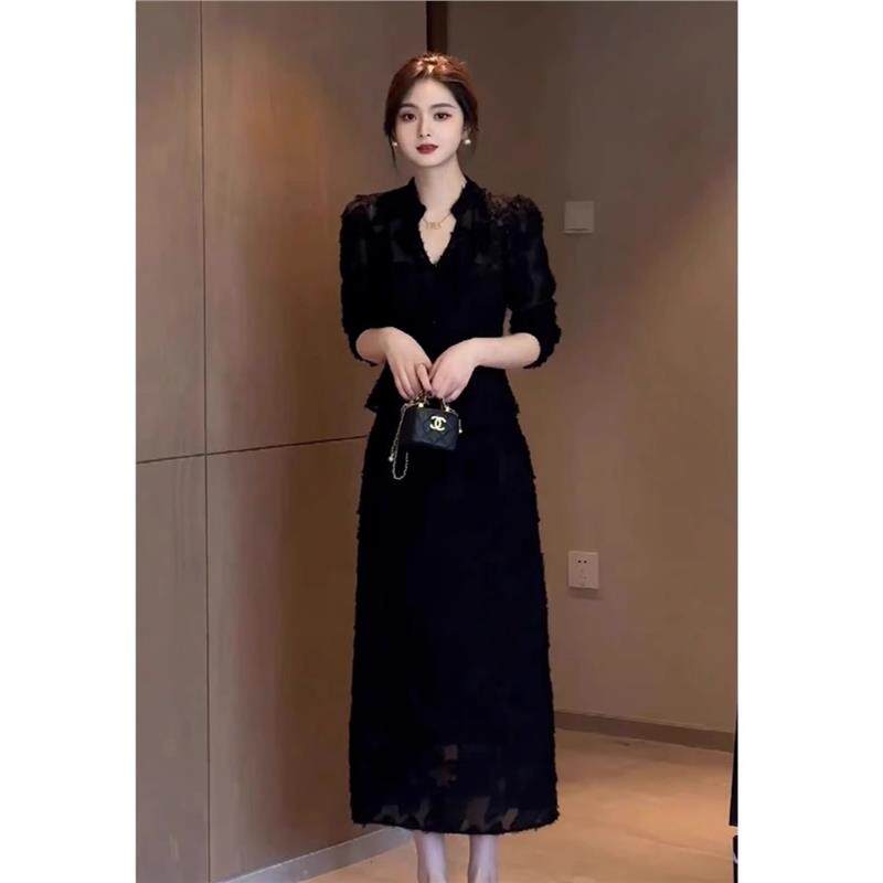 欧洲站2025年新中式裙子法式高级感御姐设计感黑色洋装两件套女