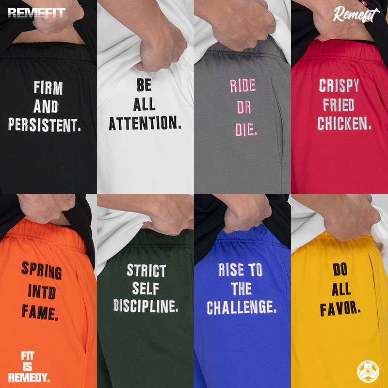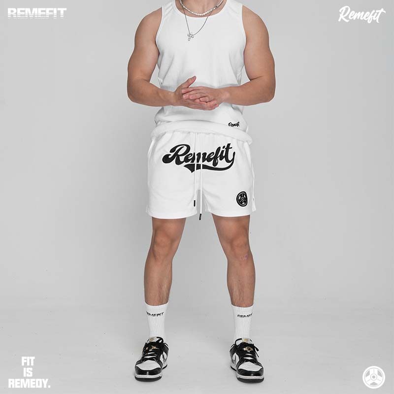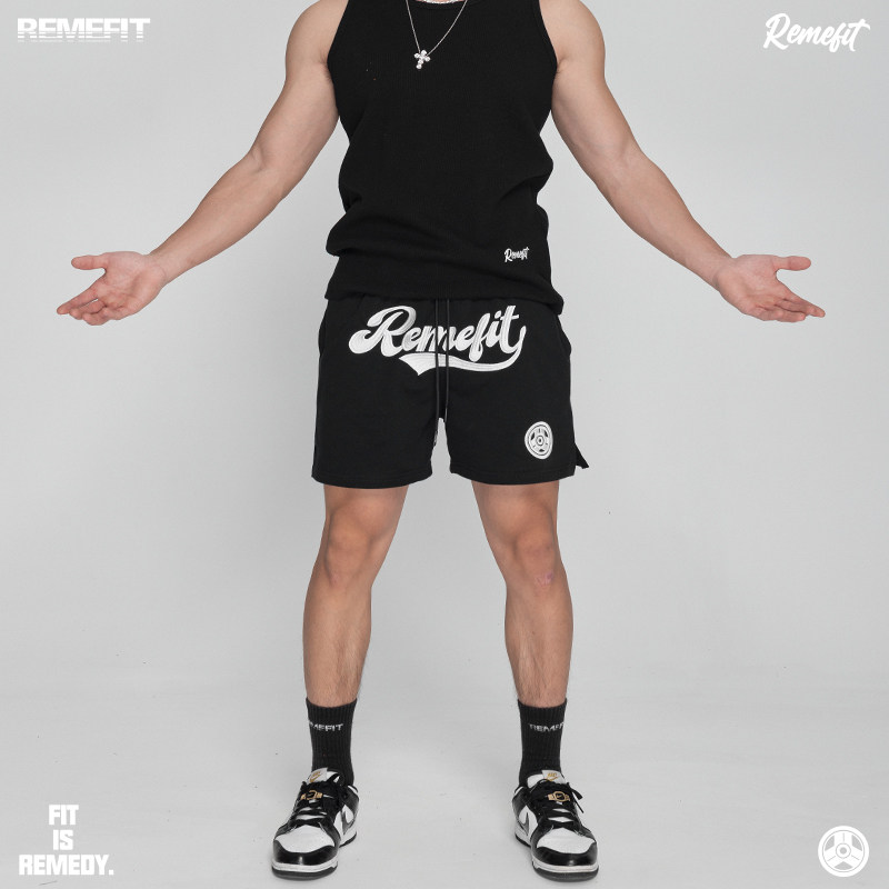 REMEFIT 8色运动语言 春夏美式纯棉重工刺绣运动杠铃片刺绣短裤潮