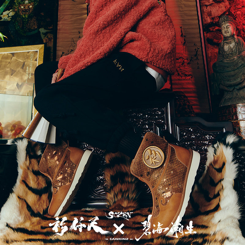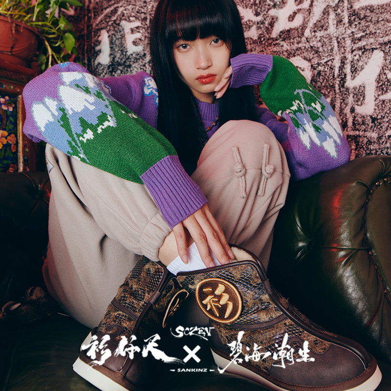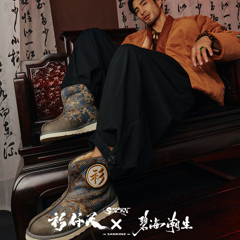 衫仟尺X碧海潮生春季新款【官靴】原创中国风国潮一脚蹬休闲皮靴