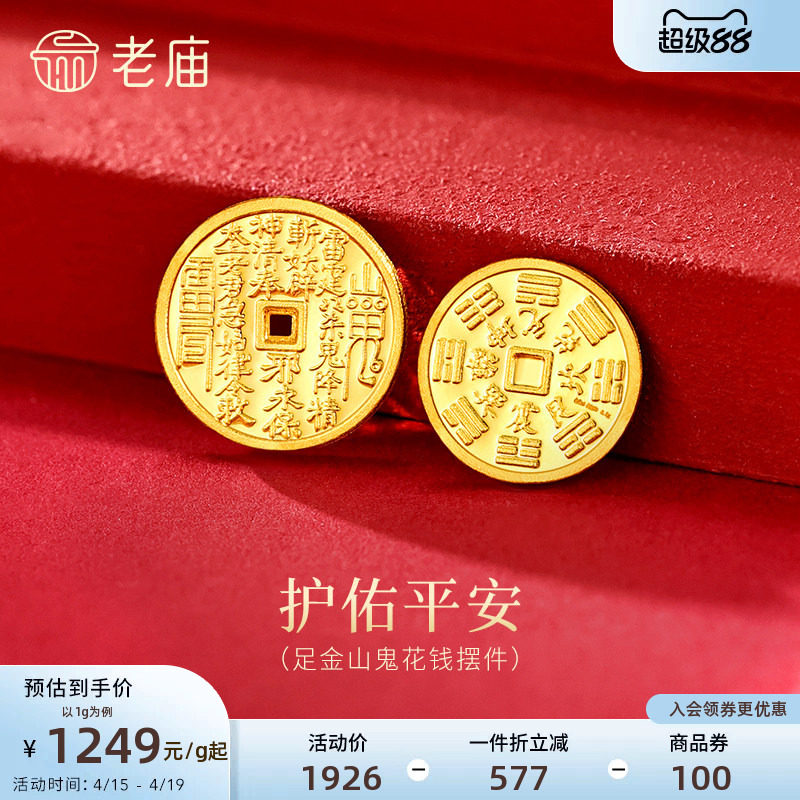 --------------------- 老庙黄金足金山鬼花钱护佑平安吉祥双面雕刻方孔铜钱招财摆件 --------------------- --------------------- 【原价】2555元 【券后价】624元