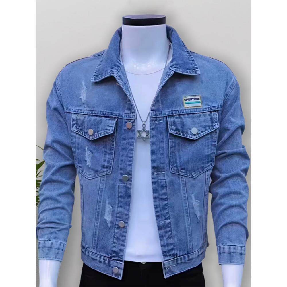 淘宝欧货高端牛仔外套男士秋季新款字母刺绣覆古韩版修身百搭轻奢夹克