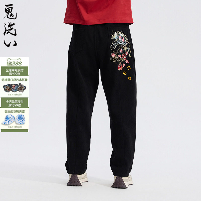 ONIARAI/鬼洗26春季棒系列马年趣味填充宽锥形针织长裤男 N540183