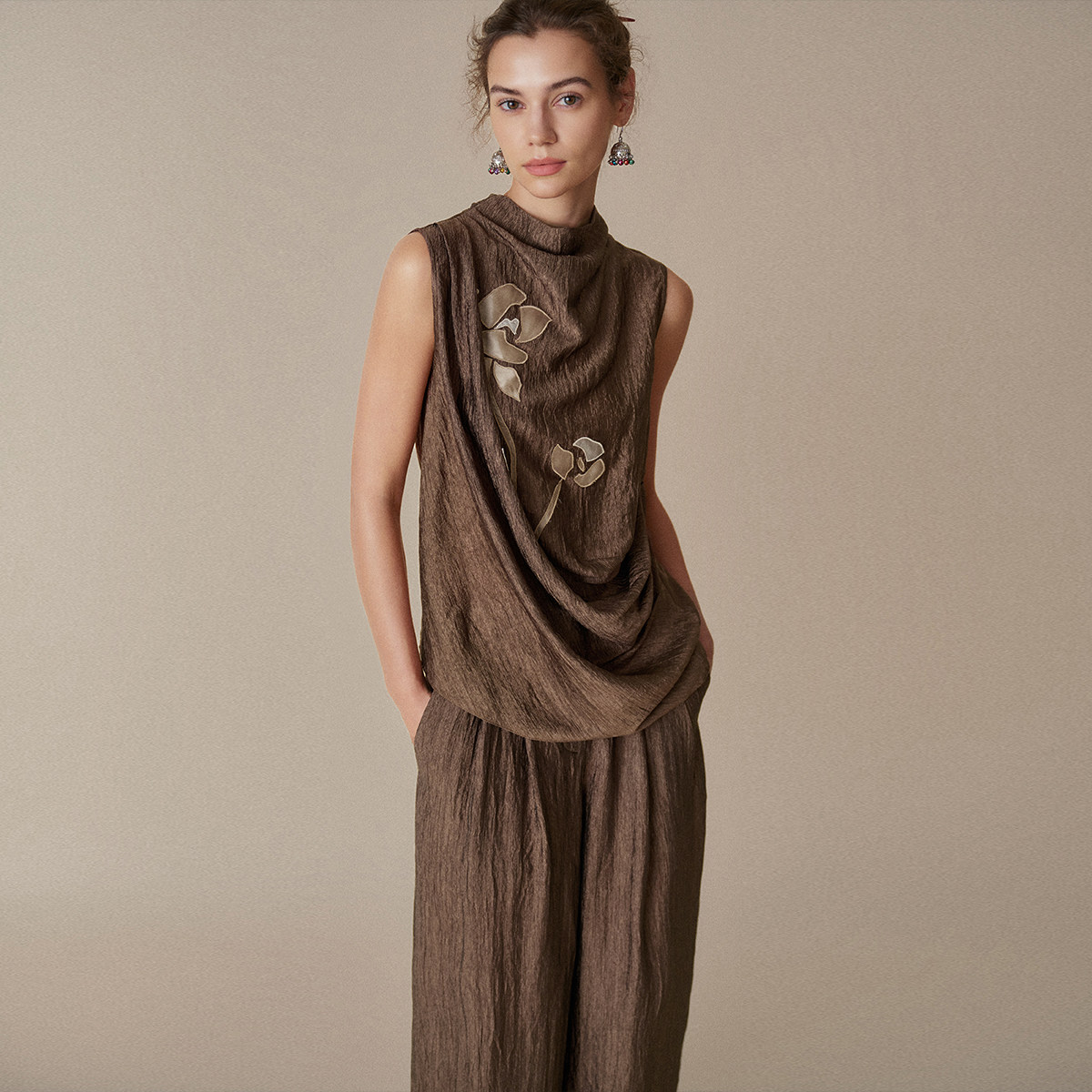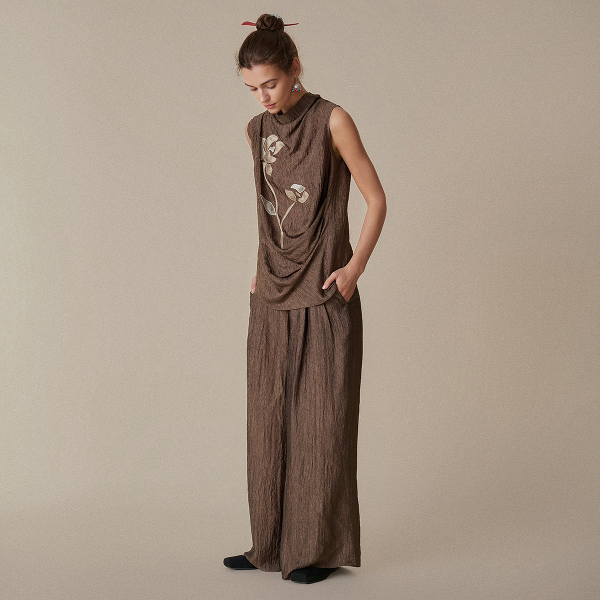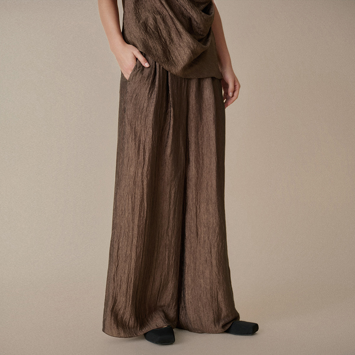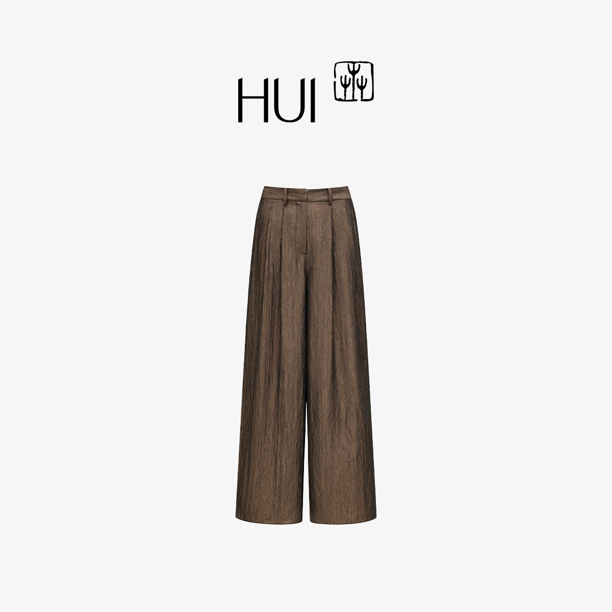 淘宝HUI卉檀褐自然皱感醋酸低调老钱松弛感阔腿裤休闲长裤2026春新款
