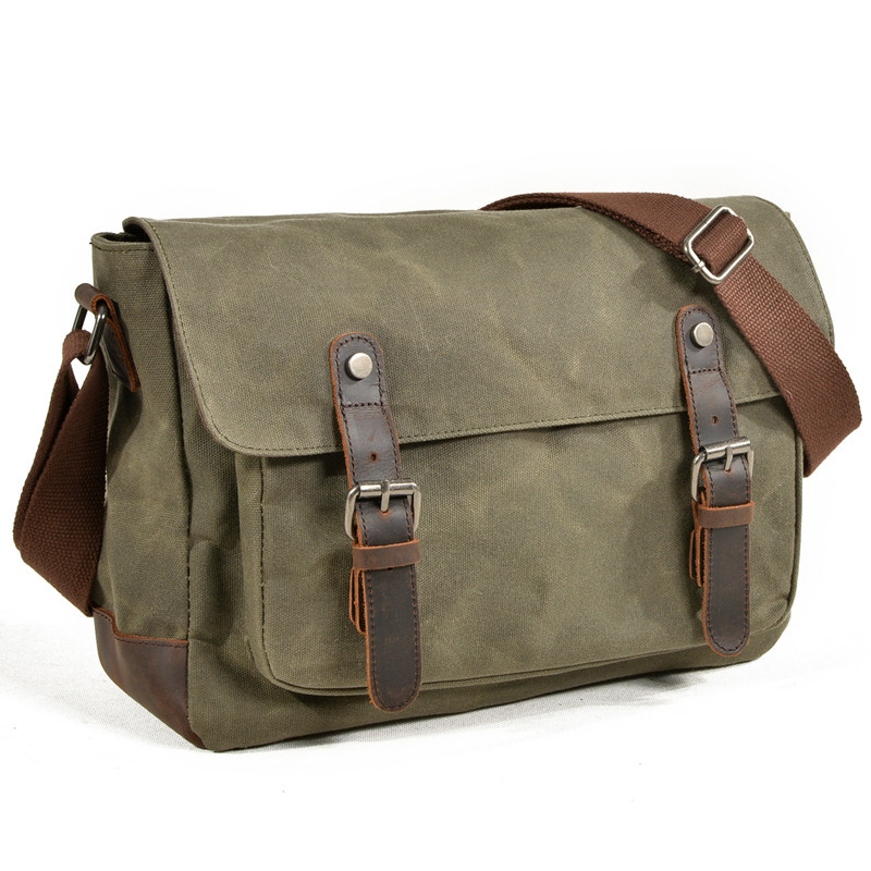 奇古西新款男包休闲单肩背包斜挎包油蜡防水帆布复古邮差包简约潮