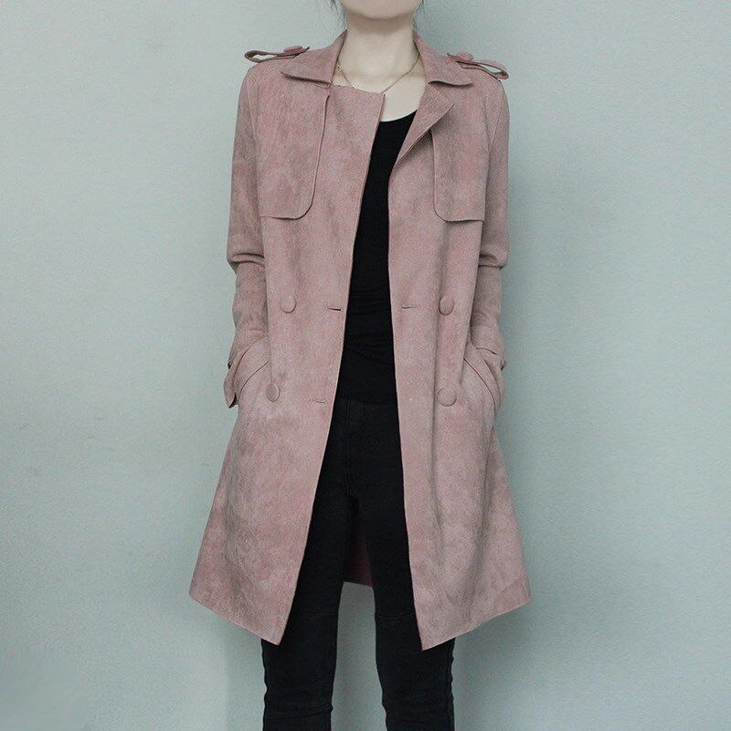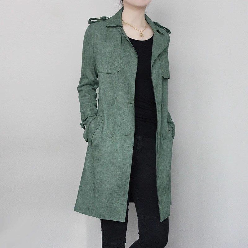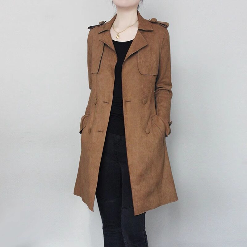 淘宝麂皮绒风衣女中长款2024年春秋新款气质外套修身垂感显瘦棕色大衣