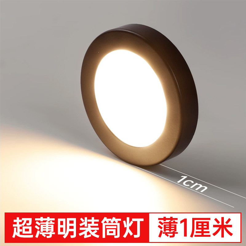 淘宝超薄免开孔led明装筒灯1cm圆形迷你小射灯酒柜展柜极简极薄吸顶灯