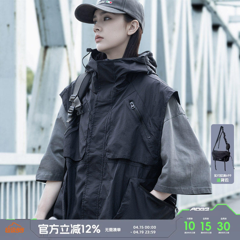 --------------------- AOGZ户外潮牌机能风连帽马甲男女夏季新款多口袋工装无袖坎肩外套 --------------------- --------------------- 【原价】399元 【券后价】169元