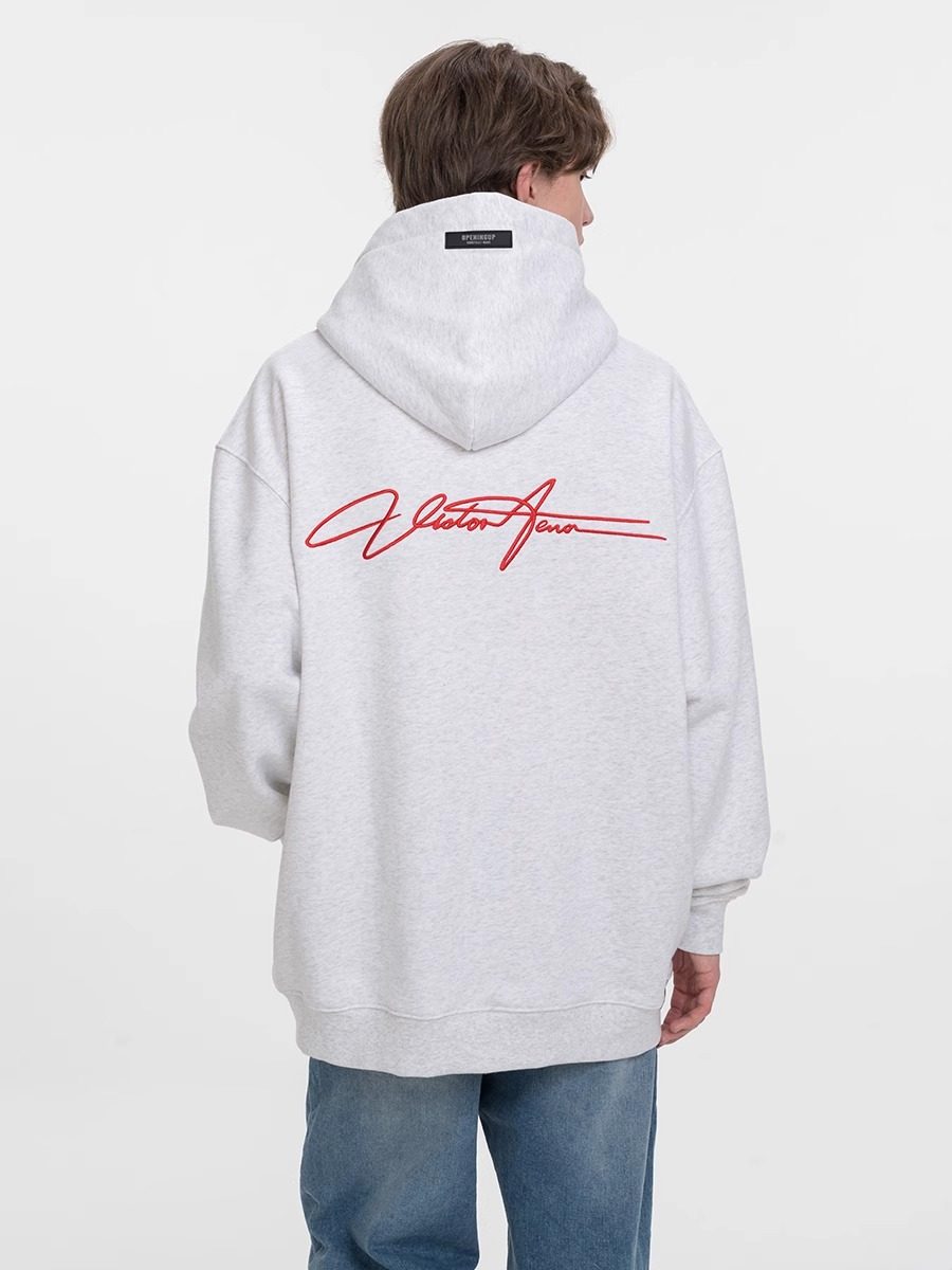 美式高街连体字连帽重磅卫衣男女美式潮牌复古秋冬加绒加厚新外套