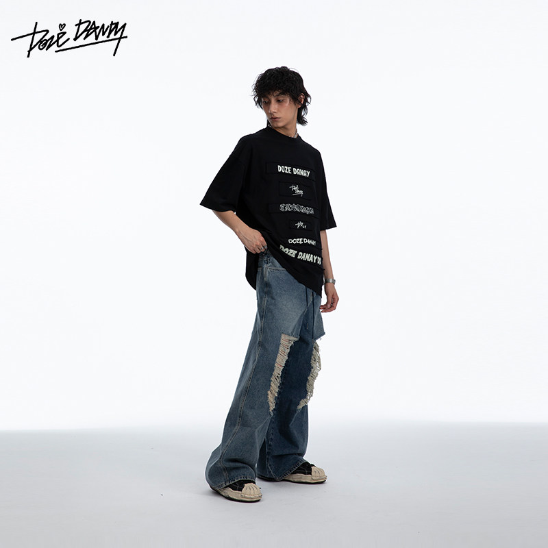 【清仓】DozeDandy简约不单调|贴布印花短袖宽松设计感T恤上衣