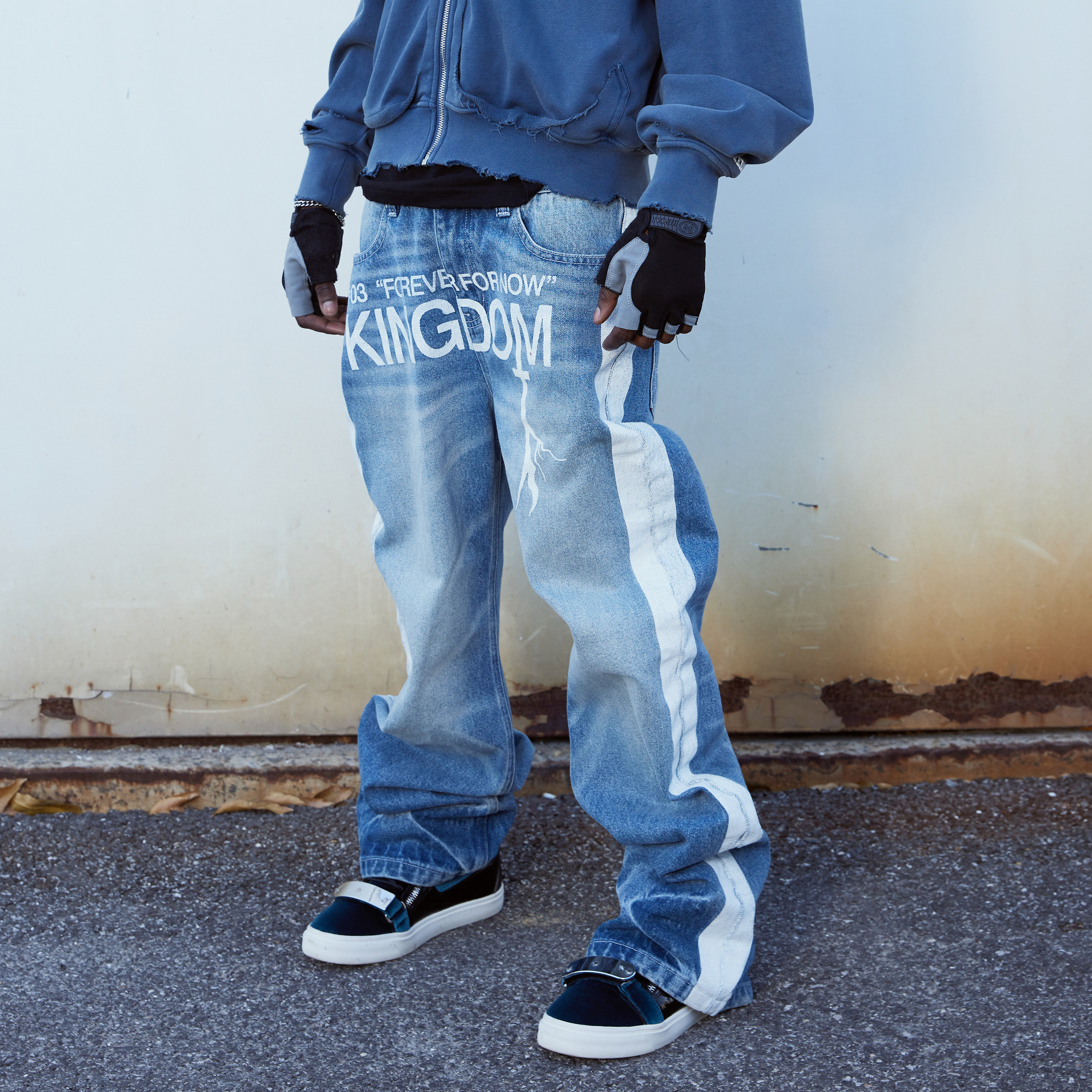 淘宝Vinkid(云梯)"新皇"牛仔裤 美式潮流小众国潮百搭拼接直筒长裤