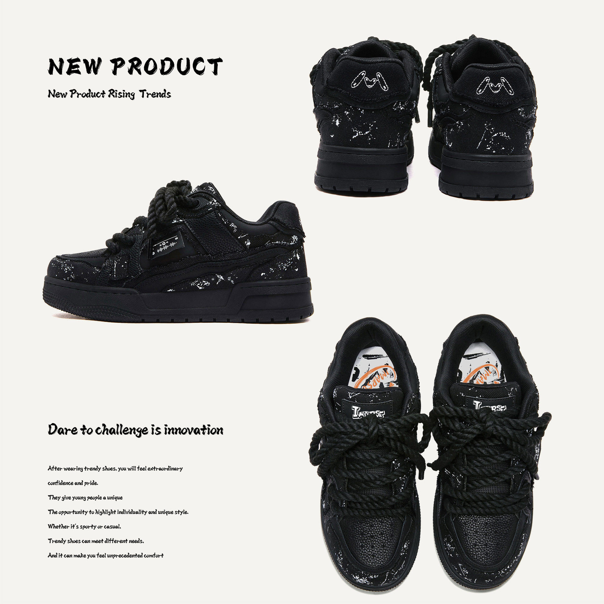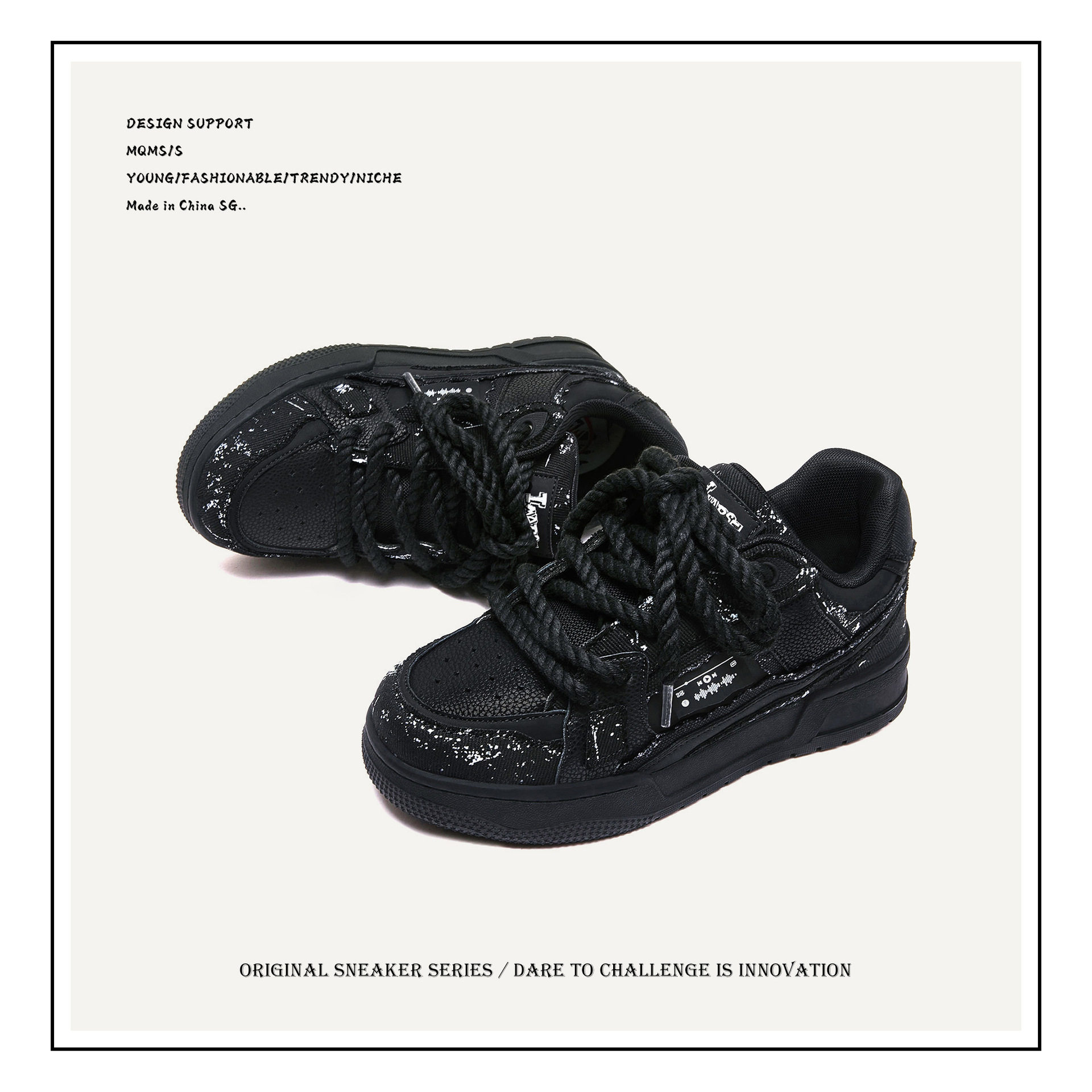 淘宝MQMS2026春季破坏美学泼墨黑武士鞋子厚底增高麻绳面包鞋男女板鞋