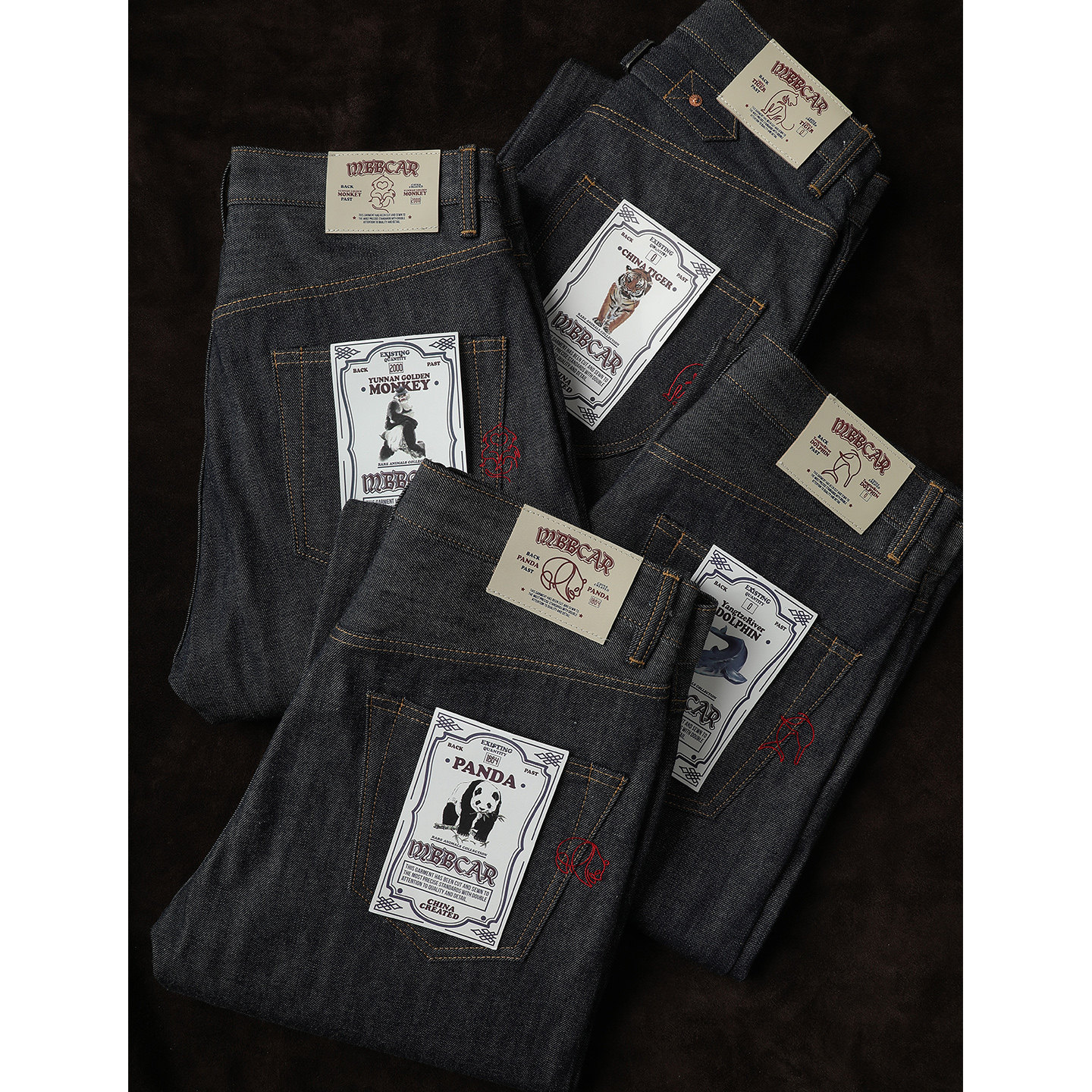 自我复刻珍稀动物14.5OZ环锭纺绳染赤耳胚布原浆牛仔裤 MMC窄幅