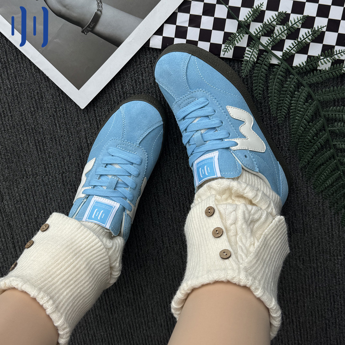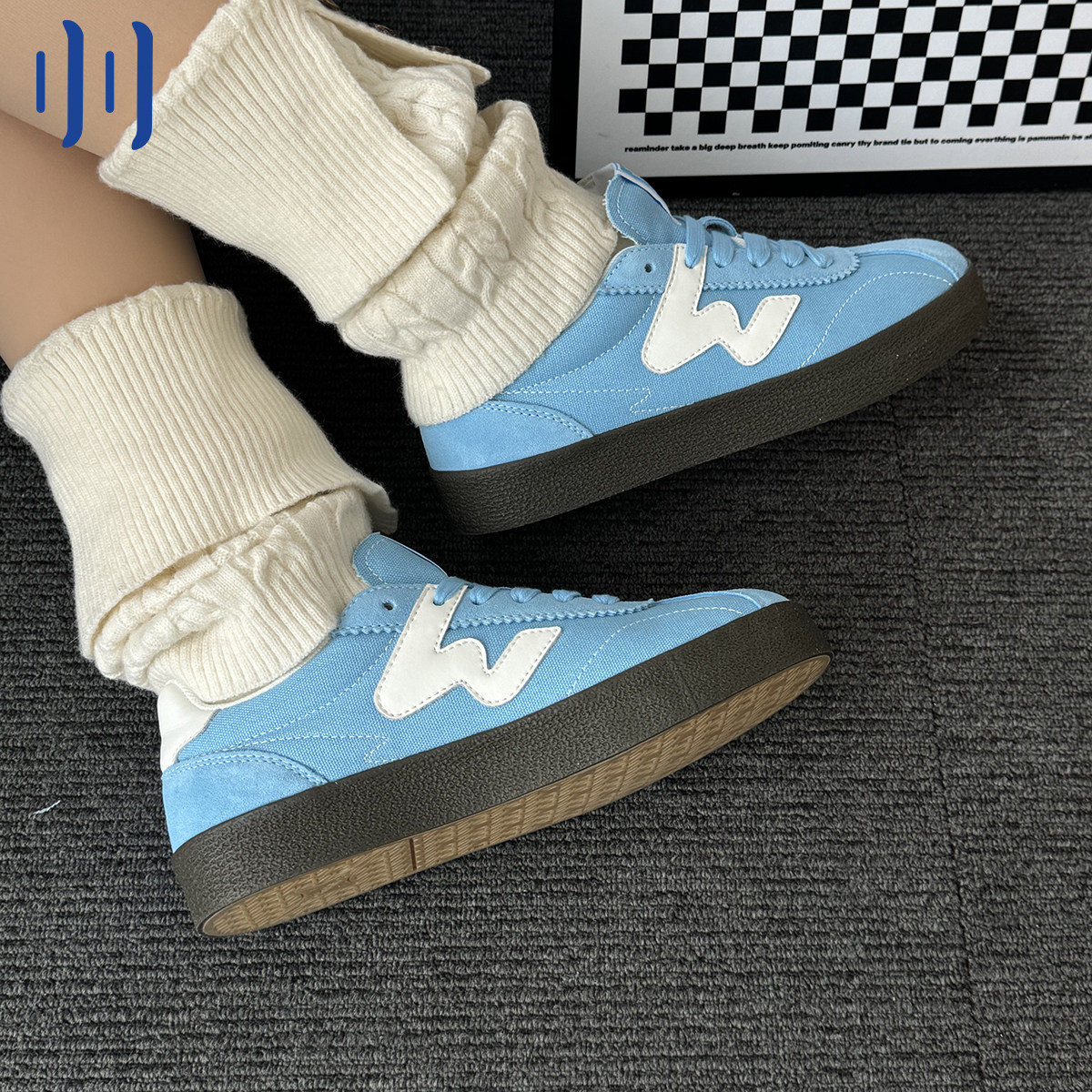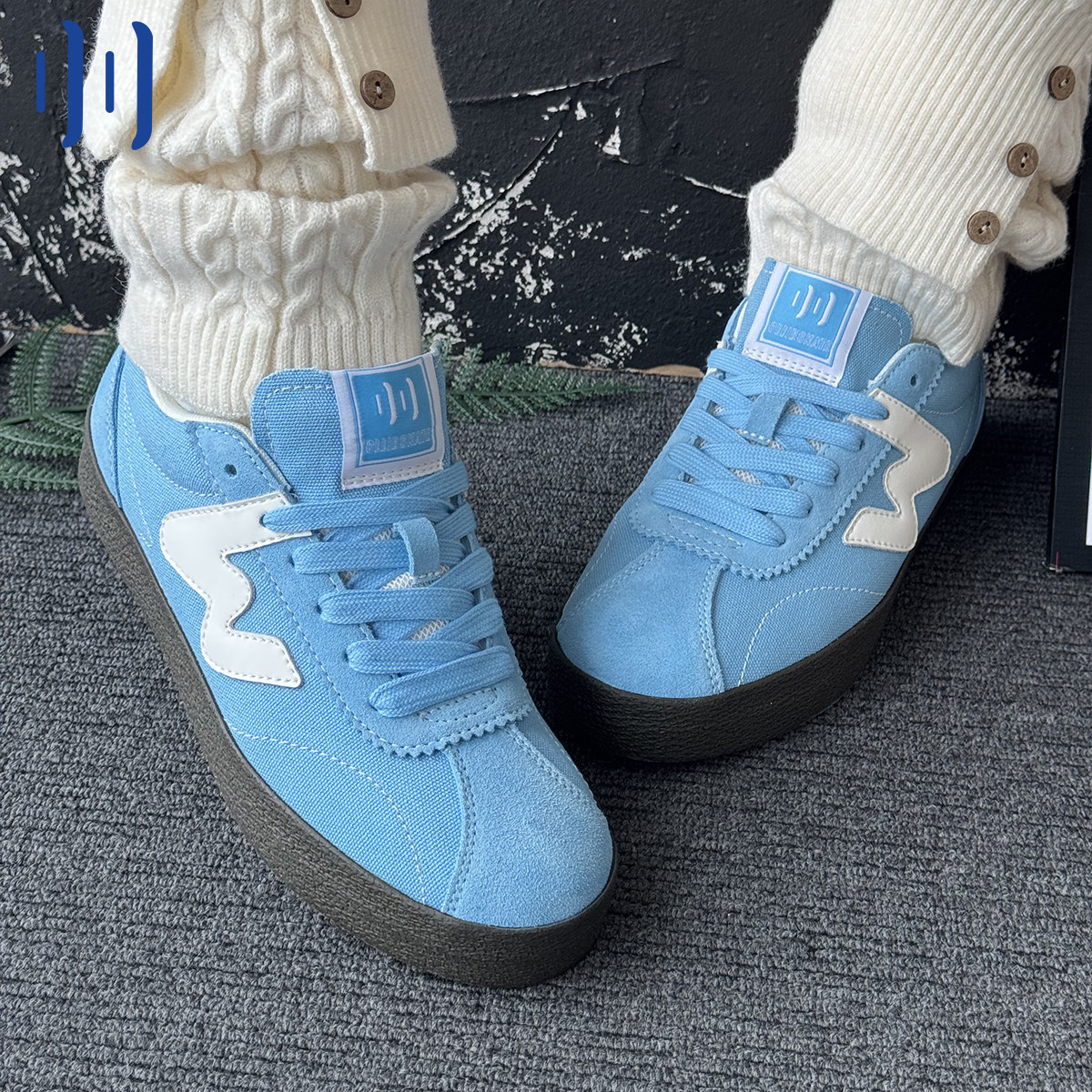 --------------------- 顽刻ollieskate蓝色翻毛皮生胶底W系列春季男女国潮德训滑板鞋 【原售价】378元 【现售价】189元 【推荐理由】