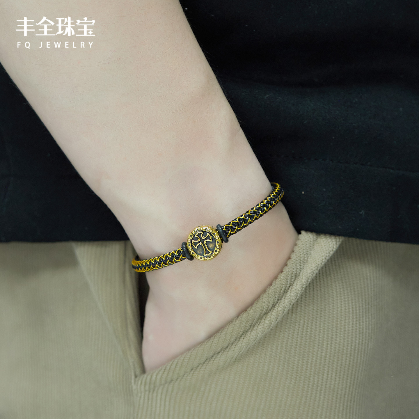 --------------------- 足金十字守护黄金手链男款转运珠女款潮酷黑金时尚百搭男女款手串 --------------------- --------------------- 【原价】5000元 【券后价】2218元