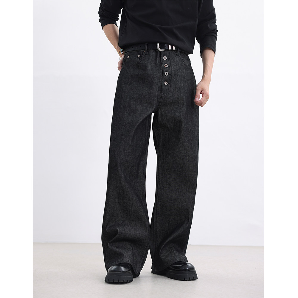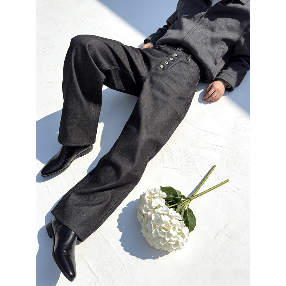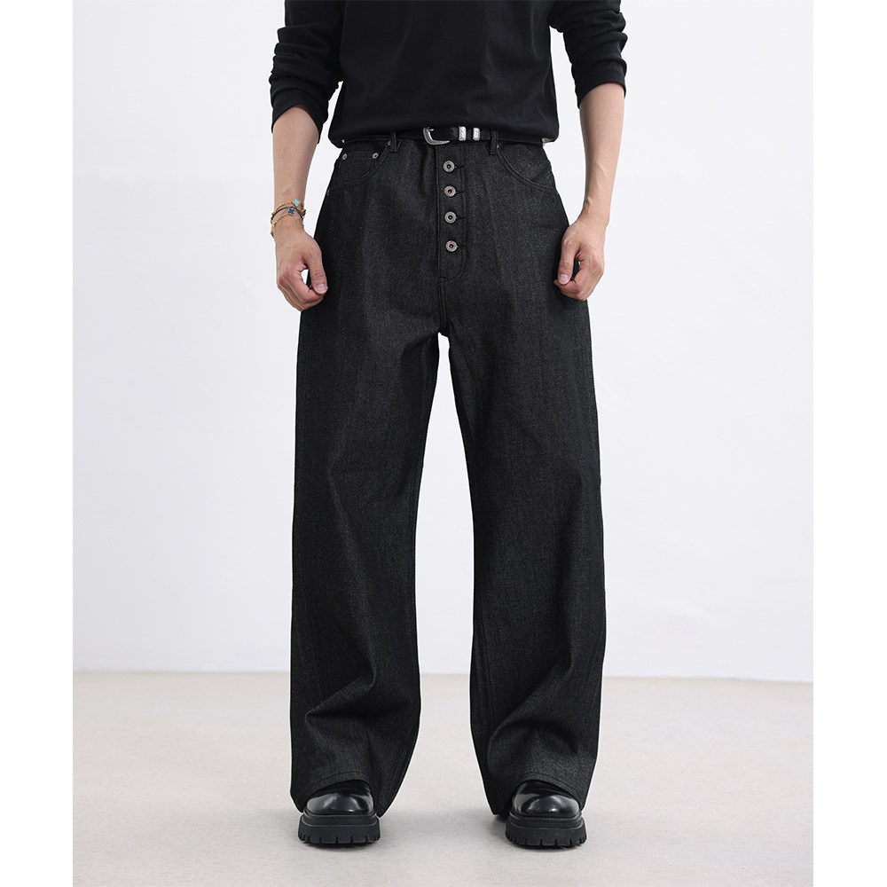 S123 杀死比赛 五连扣原牛 黑棉羽康龙超宽松直筒牛仔裤14oz