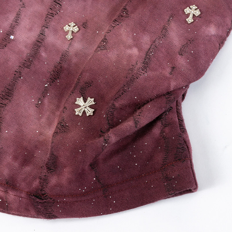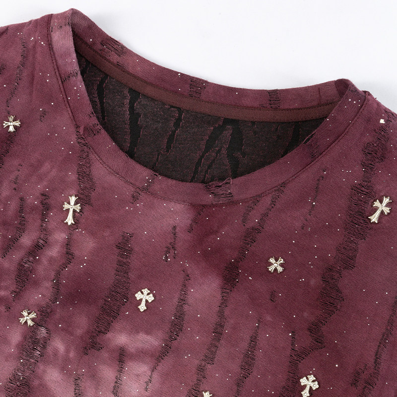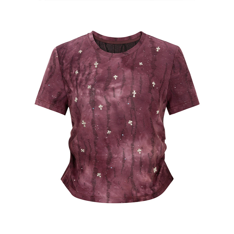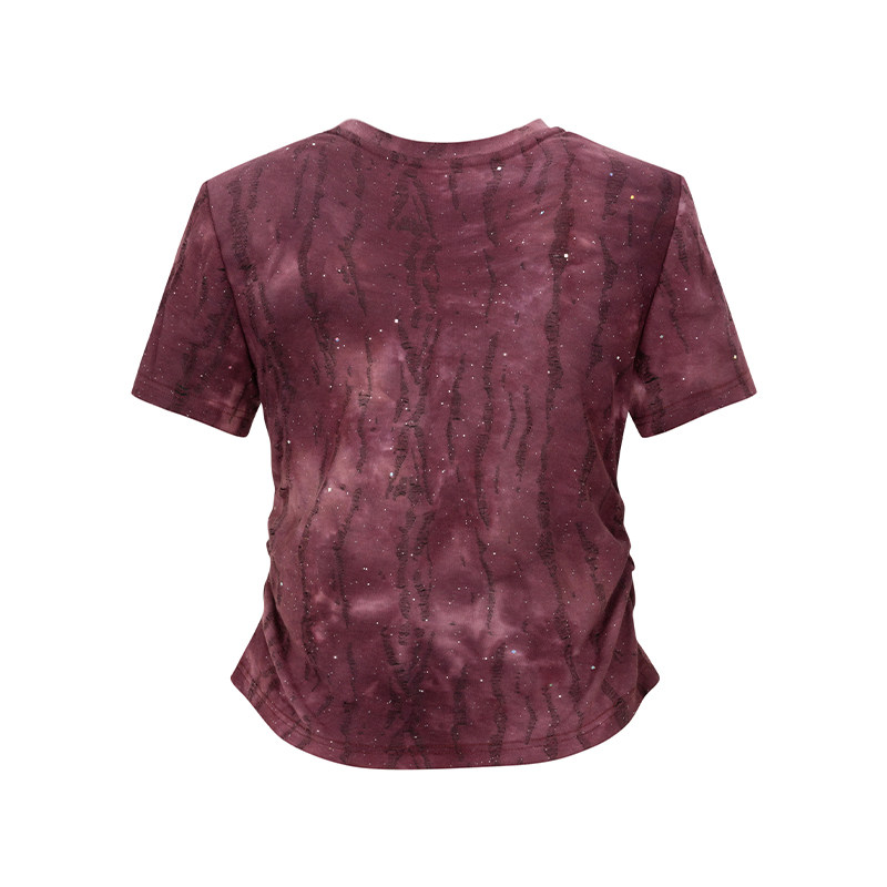 【时菲菲】商场同款夏季修身褶皱设计扎染烫钻上衣N035B52312