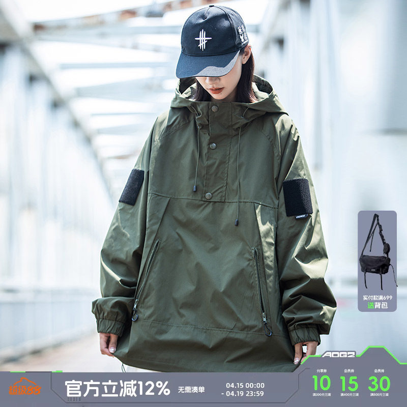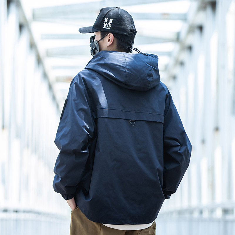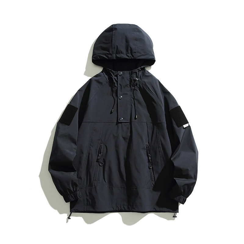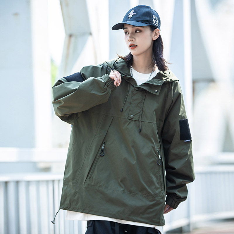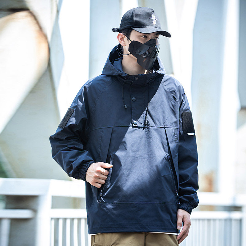 淘宝小彬国潮牌日系复古套头冲锋外套男连帽秋季宽松休闲立领工装夹克