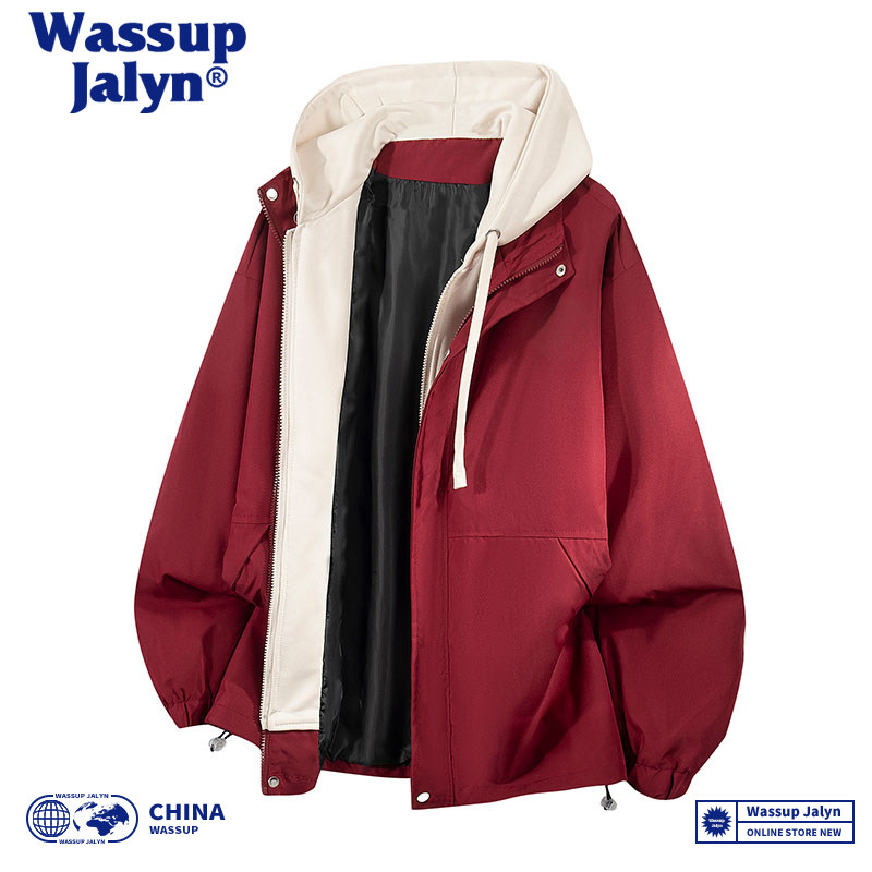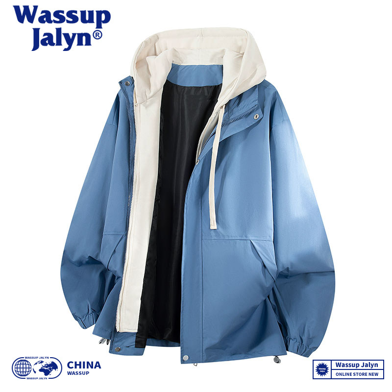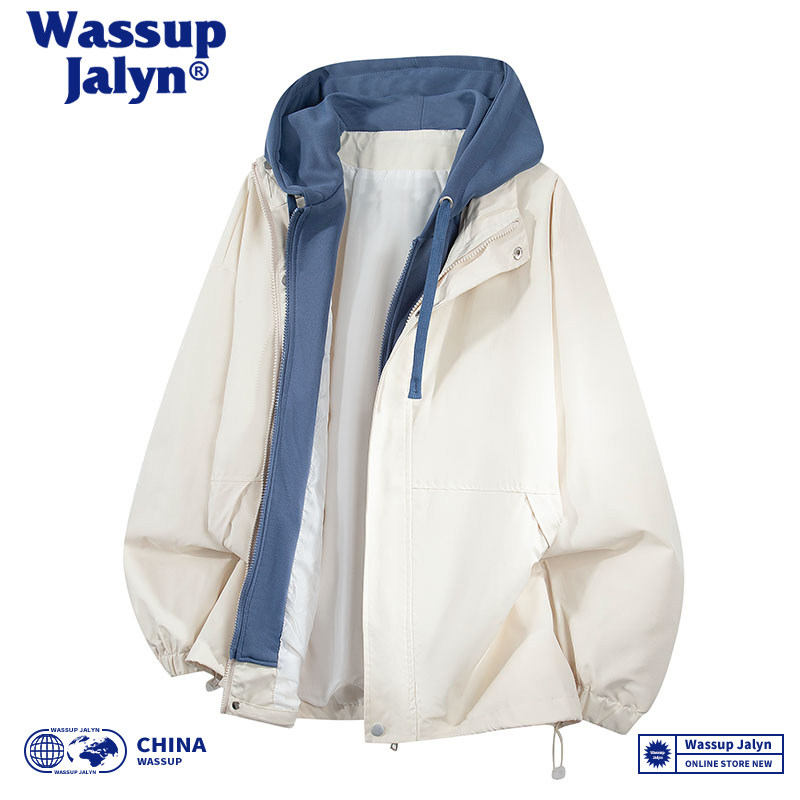 WASSUP JALYN秋冬假两件连帽潮牌情侣冲锋衣工装宽松休闲夹克外套