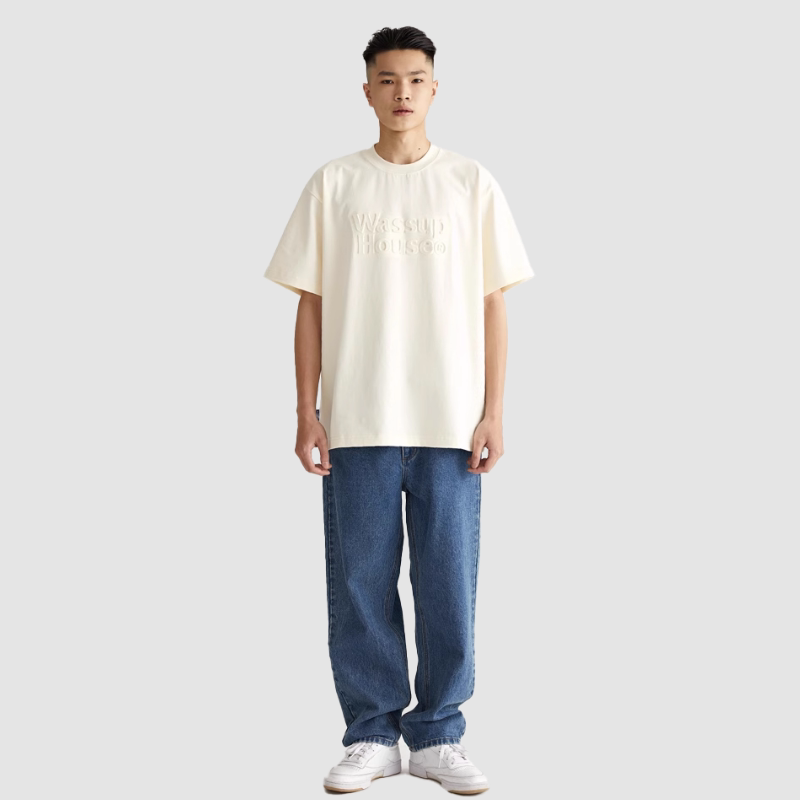 --------------------- wassuphouse压印短袖t恤男女夏季国潮牌流纯棉米白色圆领简约上衣 【原售价】149元 【现售价】87.1元 【推荐理由】