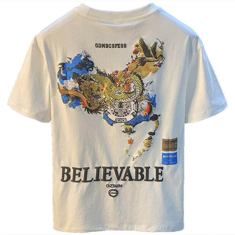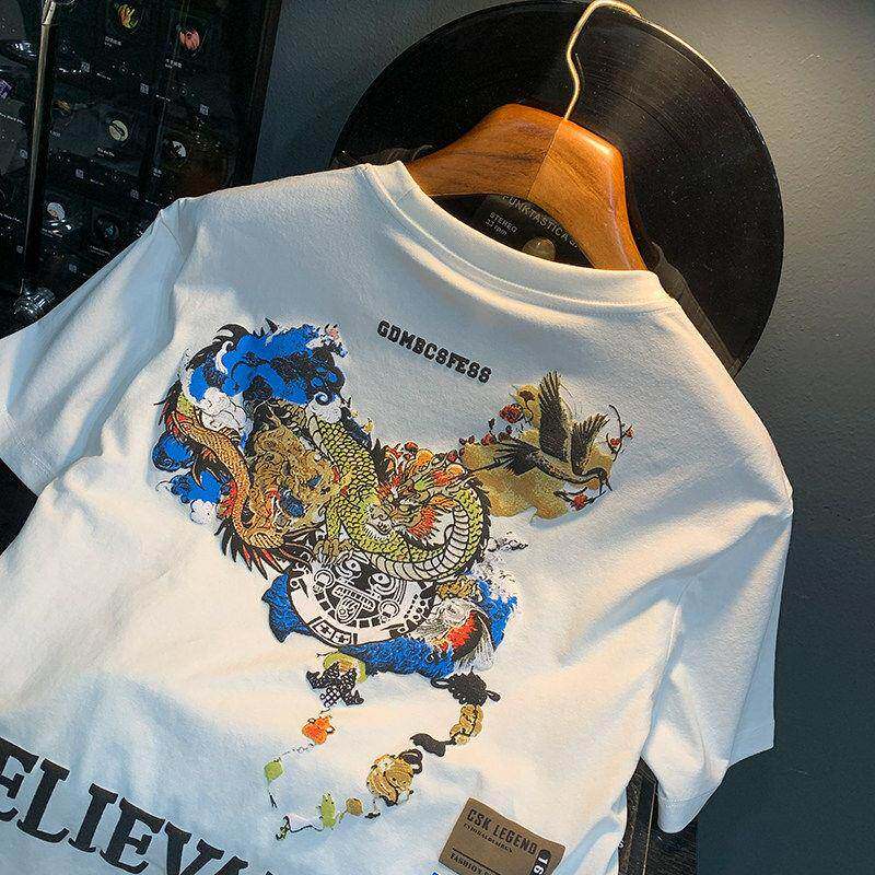 --------------------- MAROLIO高端t恤潮流夏季薄款中国龙印花白色短袖上衣国潮男装衣服 --------------------- --------------------- 【原价】358.4元 【券后价】298.4元