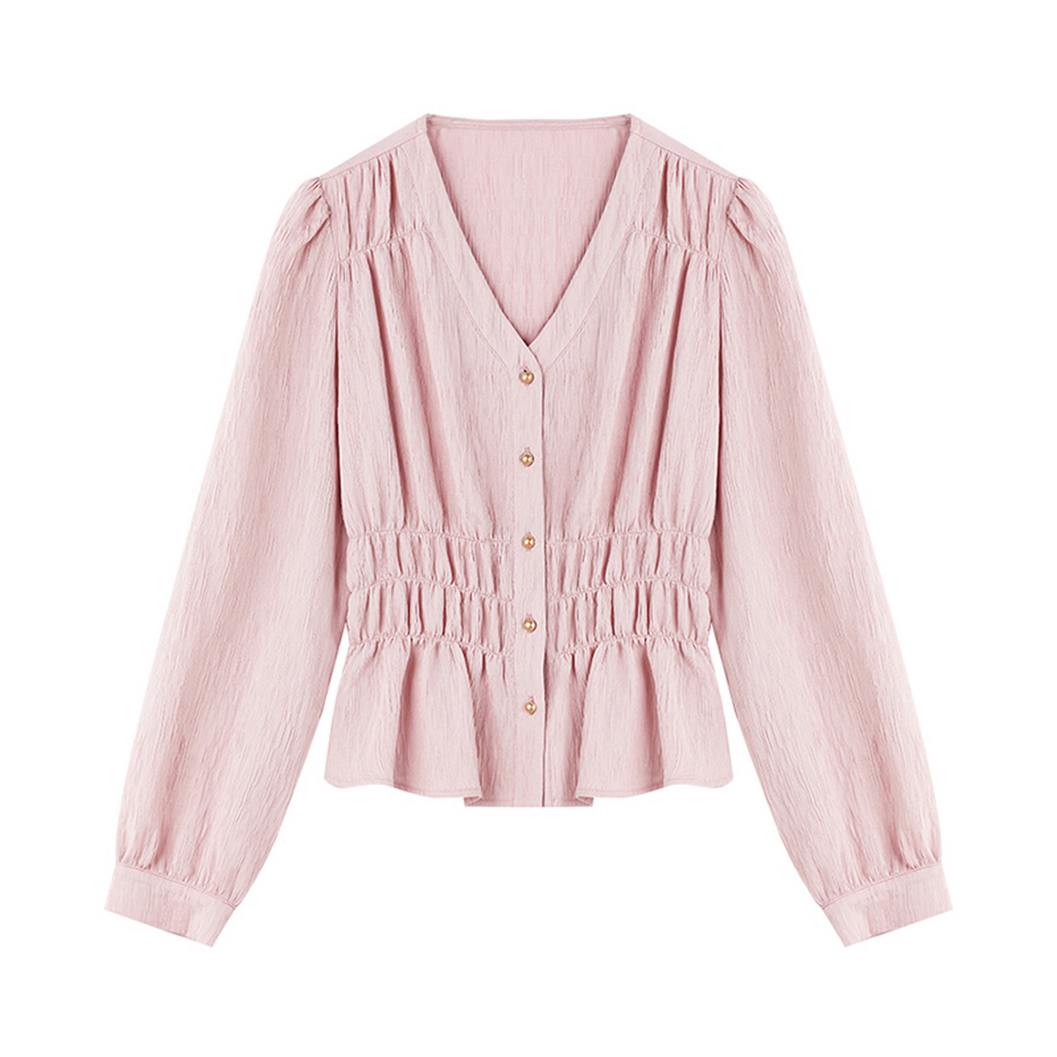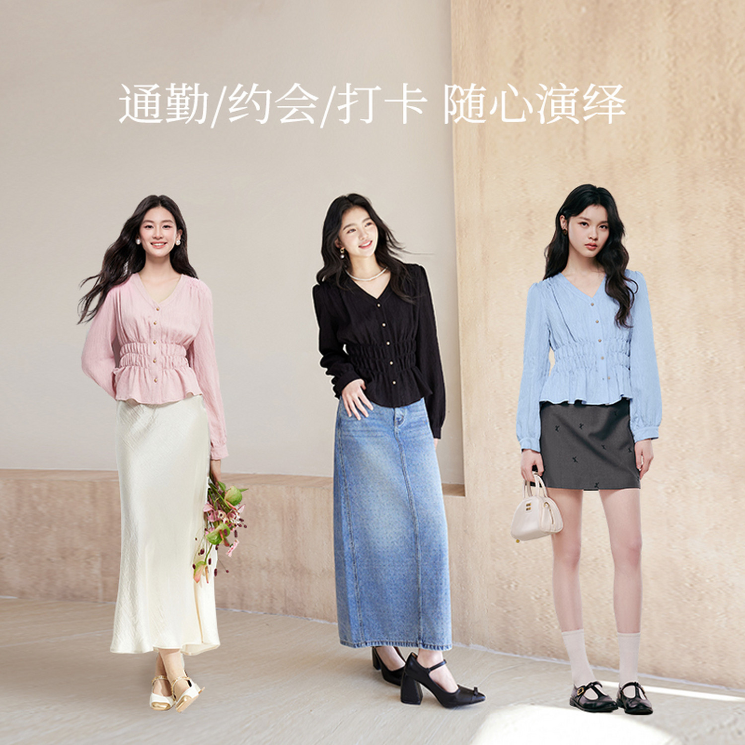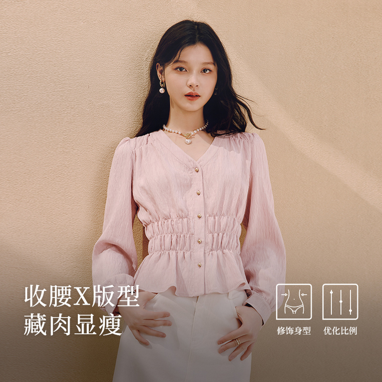 --------------------- 秋水伊人蓝色V领长袖衬衫女2026初秋新款小个子褶皱设计感上衣 【原售价】688元 【现售价】169元 【推荐理由】