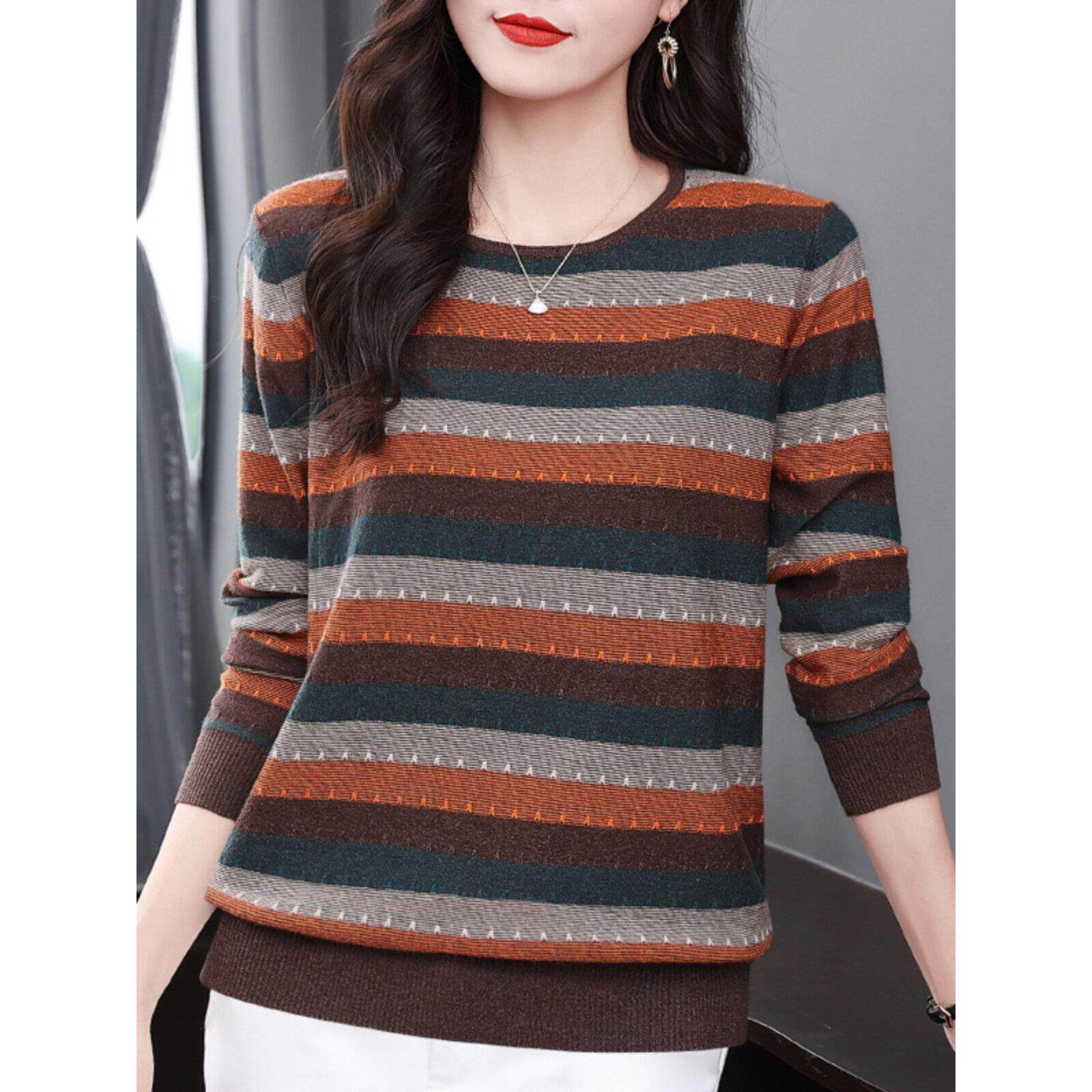 淘宝条纹针织打底衫女毛衣春秋装2025新款大码宽松显瘦遮肚子长袖上衣