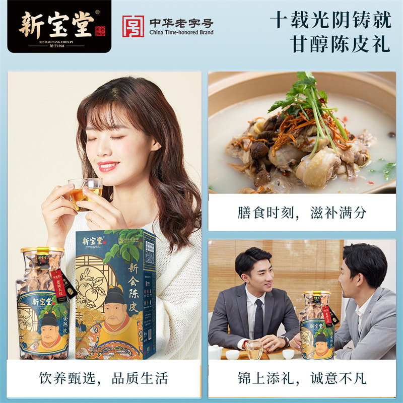 --------------------- 新宝堂x宋潮雅集x天猫国潮新会陈皮十年陈皮玻璃瓶礼盒250克 【原售价】1188元 【现售价】832元 【推荐理由】