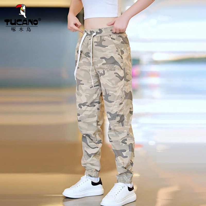 啄木鸟迷彩冰丝工装裤男2026新款宽运动松束脚休闲裤夏季薄款透气