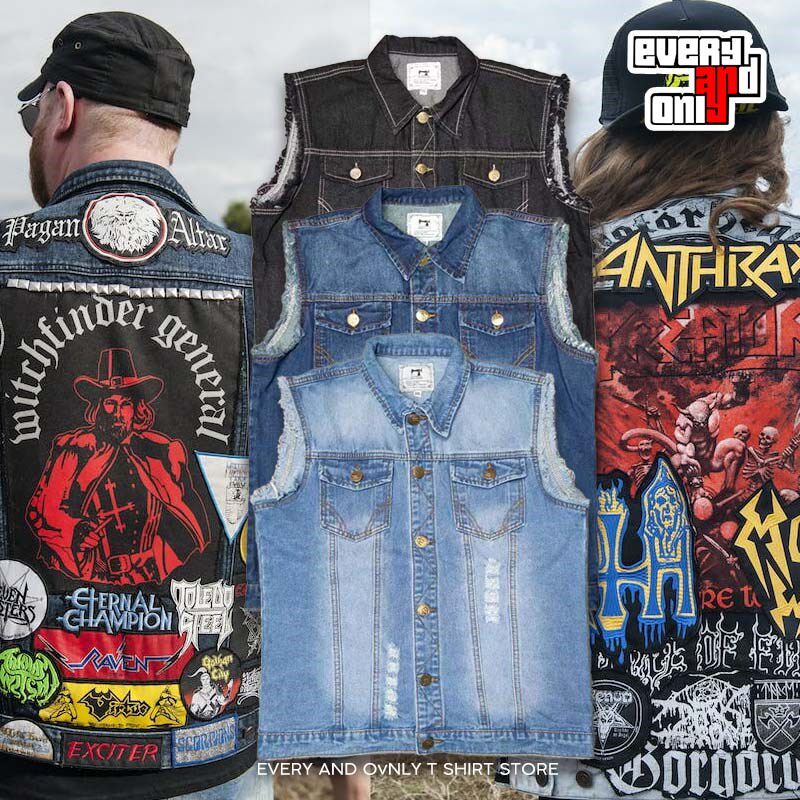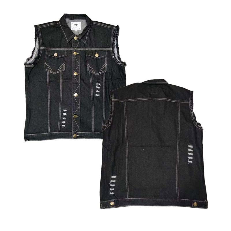牛仔马甲破洞做旧金属摇滚专用缝布标布贴四季无袖坎肩牛仔背心
