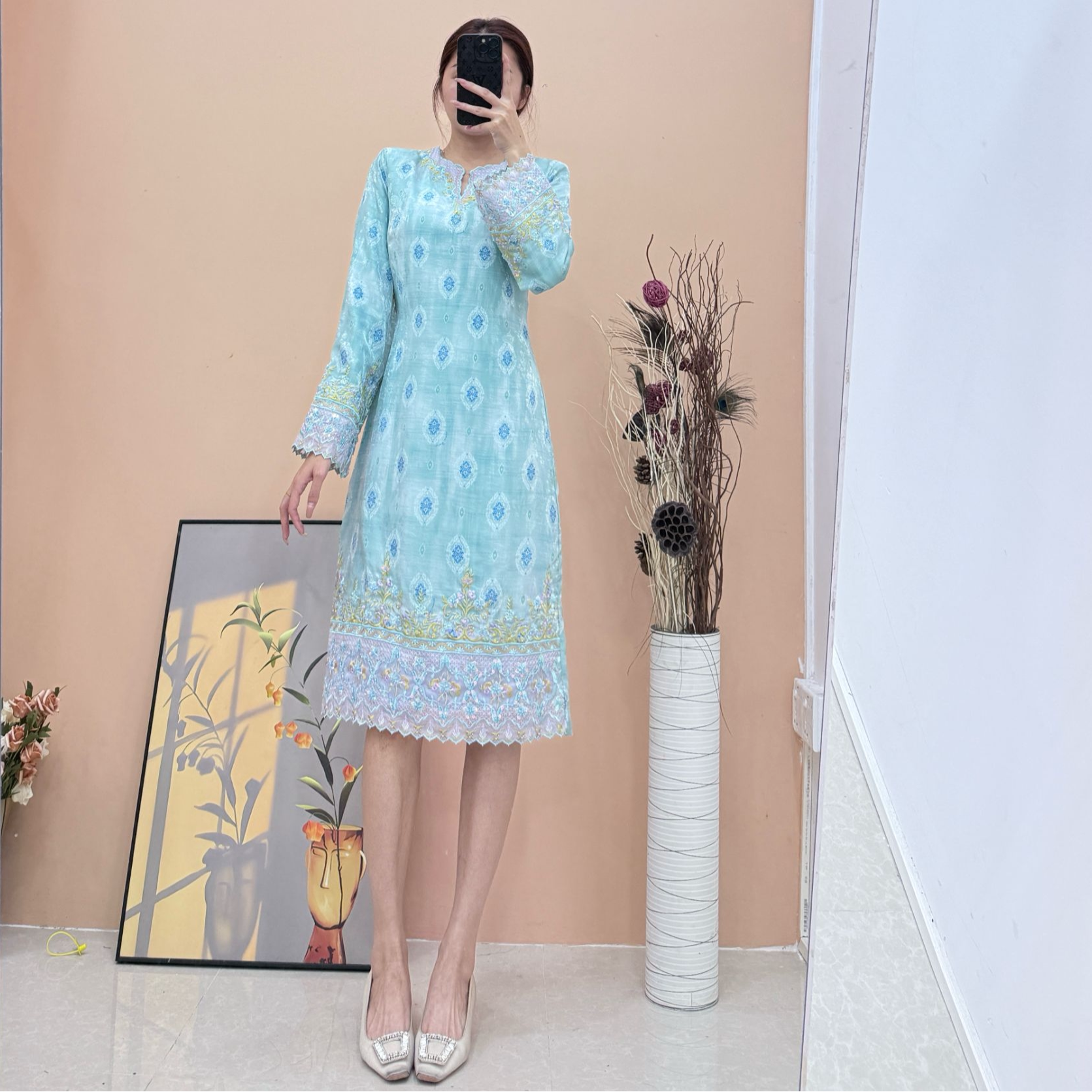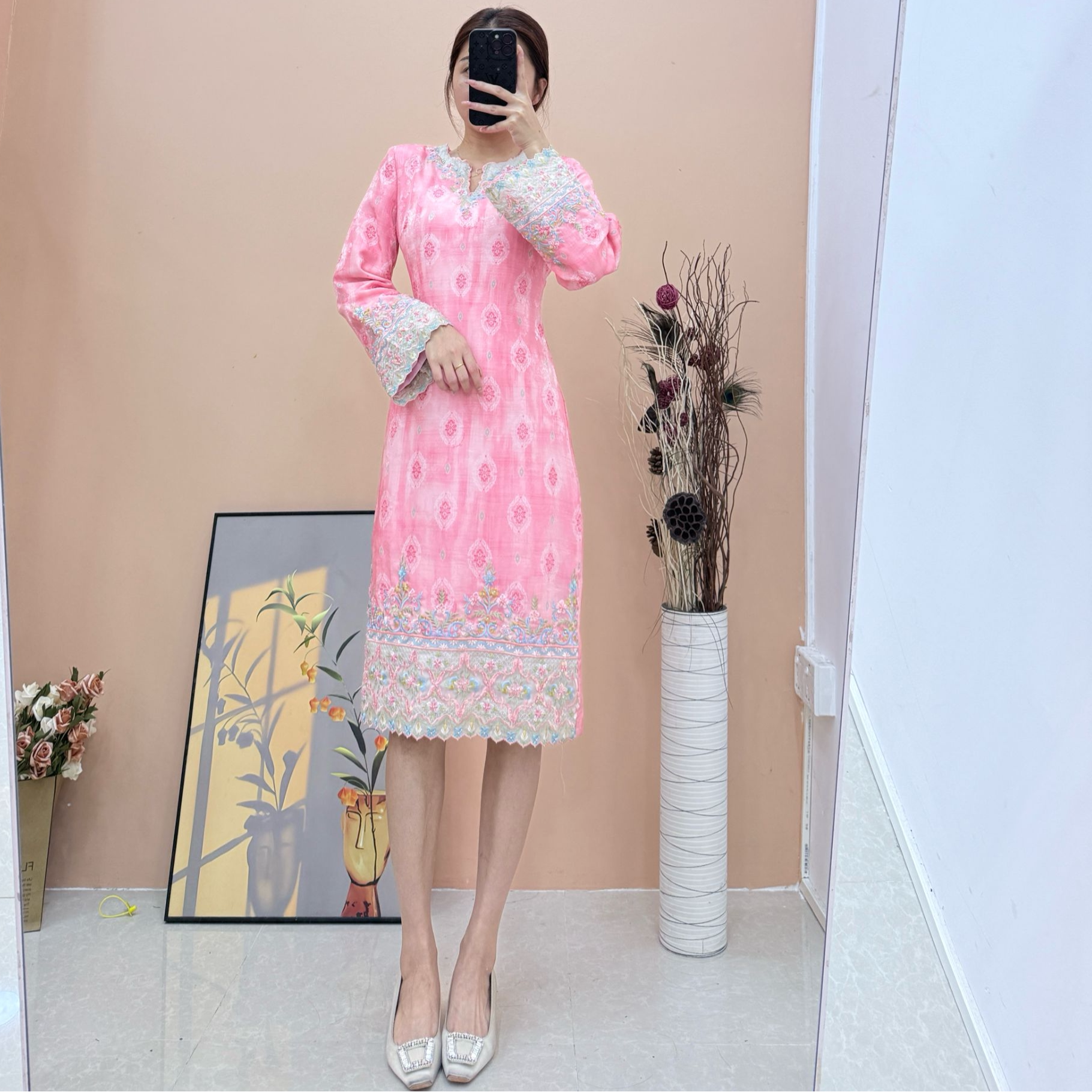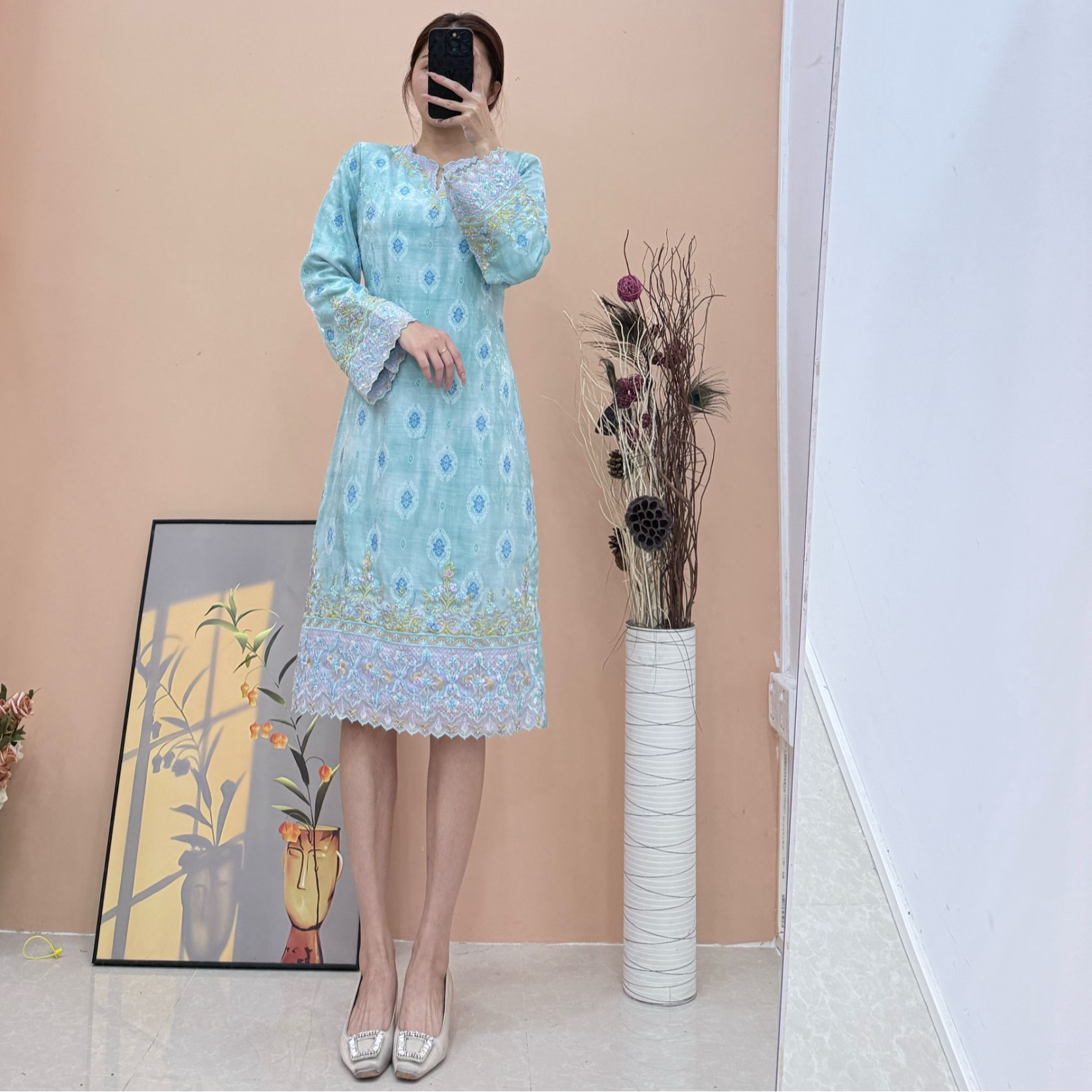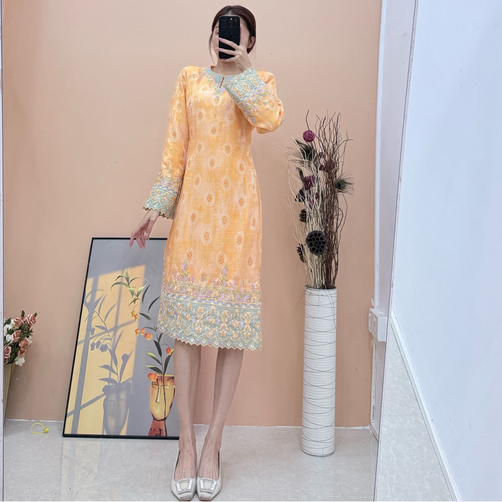 淘宝法式优雅重工刺绣异域风宽松显瘦气质连衣裙E0207
