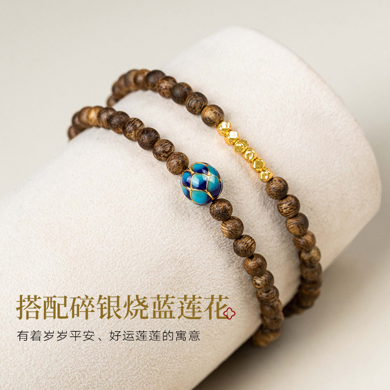 佑匠奇楠沉香手串国潮风叠戴双三圈文玩蜜蜡饰品女士文莱木质手链