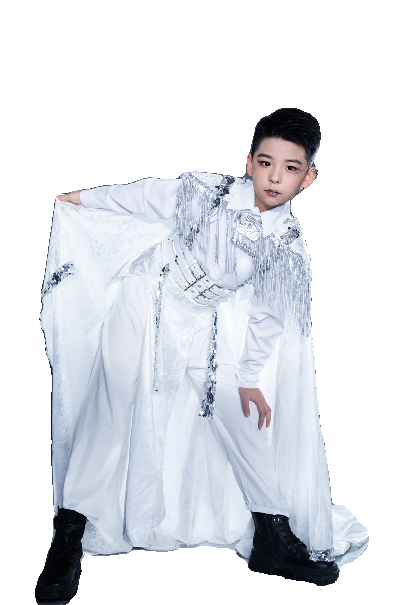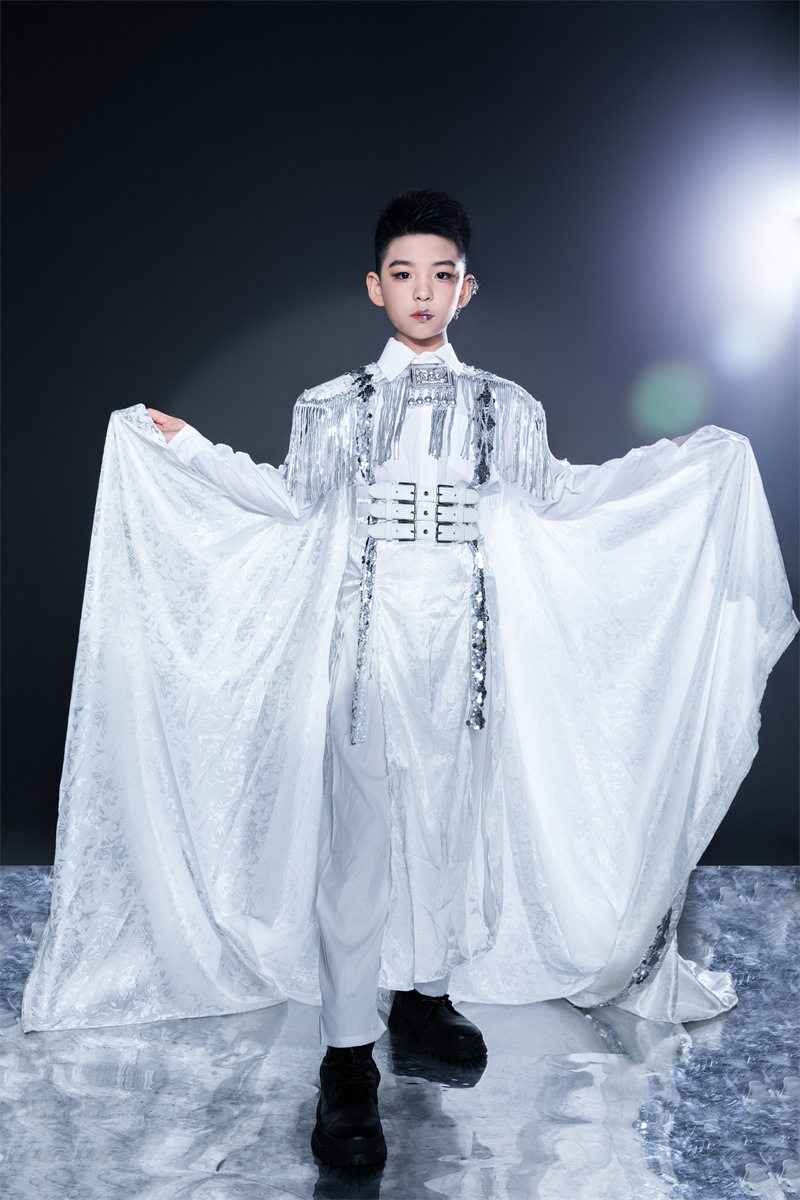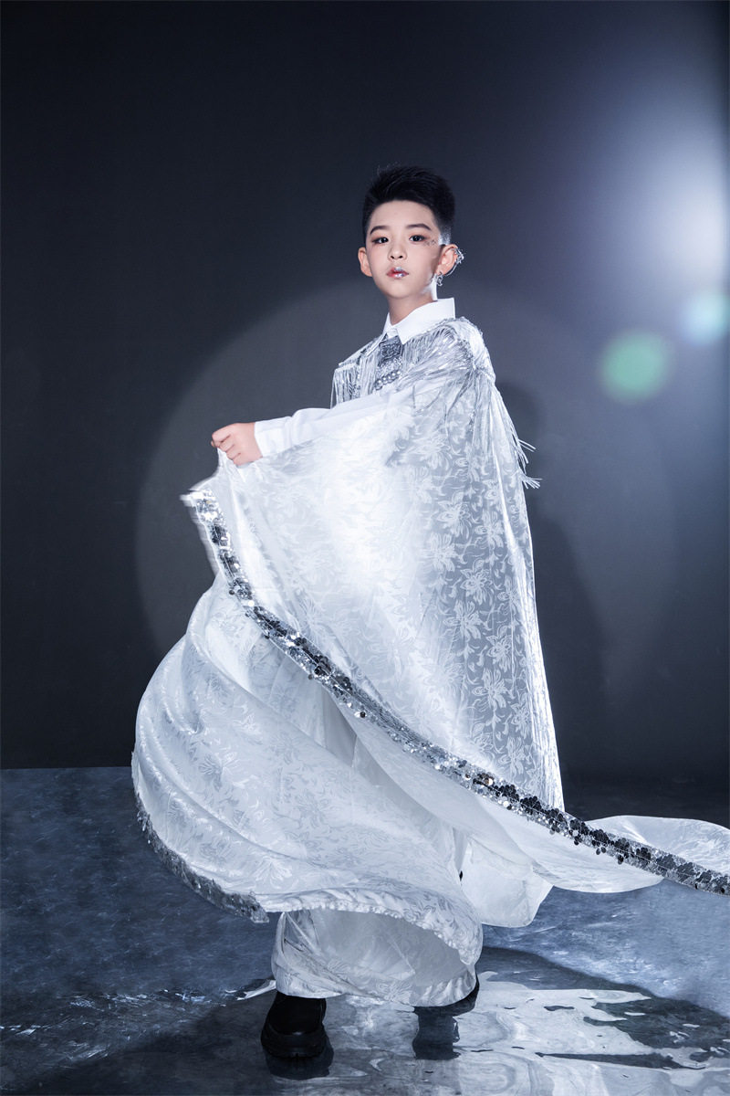 淘宝男童白色中国风民族风苗疆坎肩拖尾国潮走秀服装中大童古风礼服新