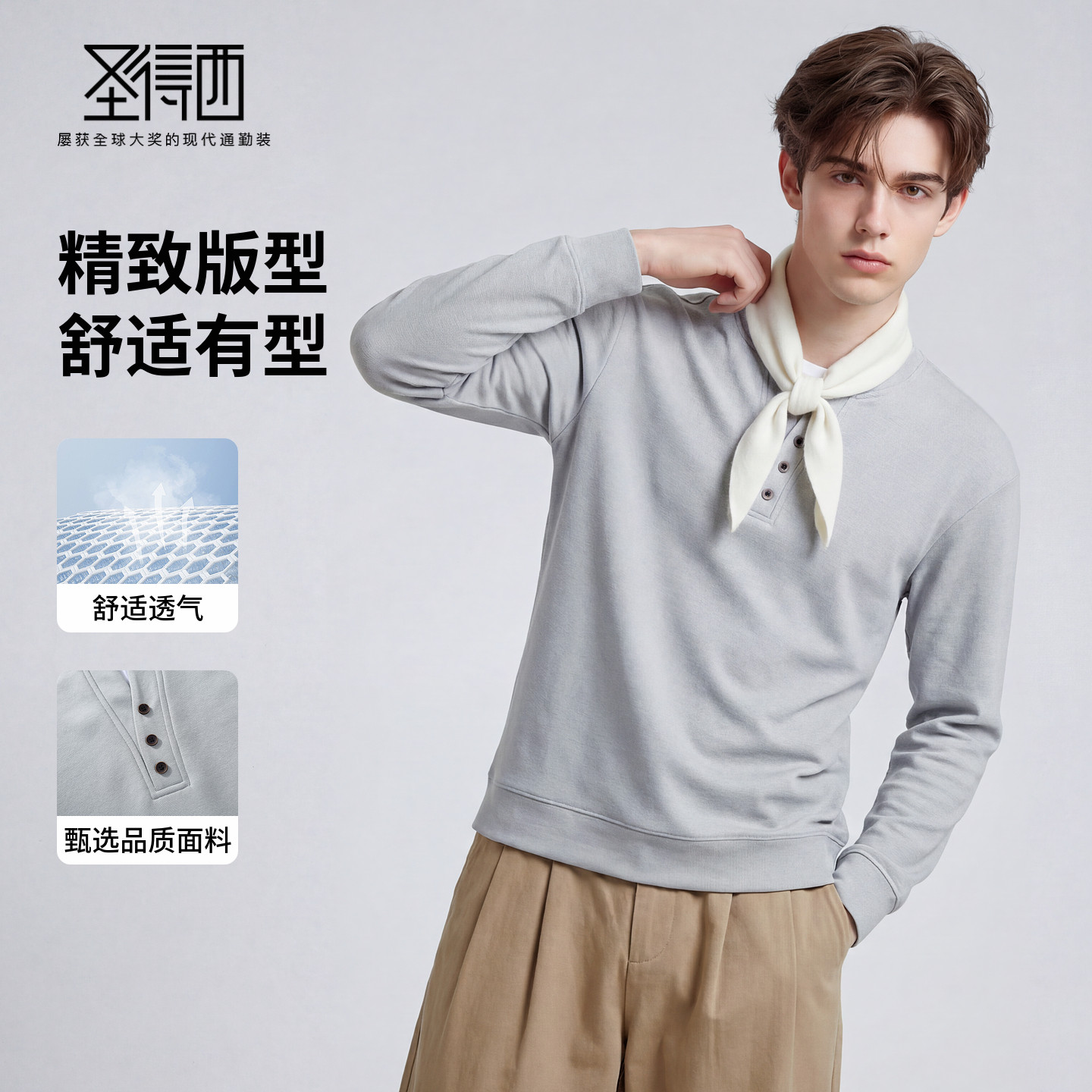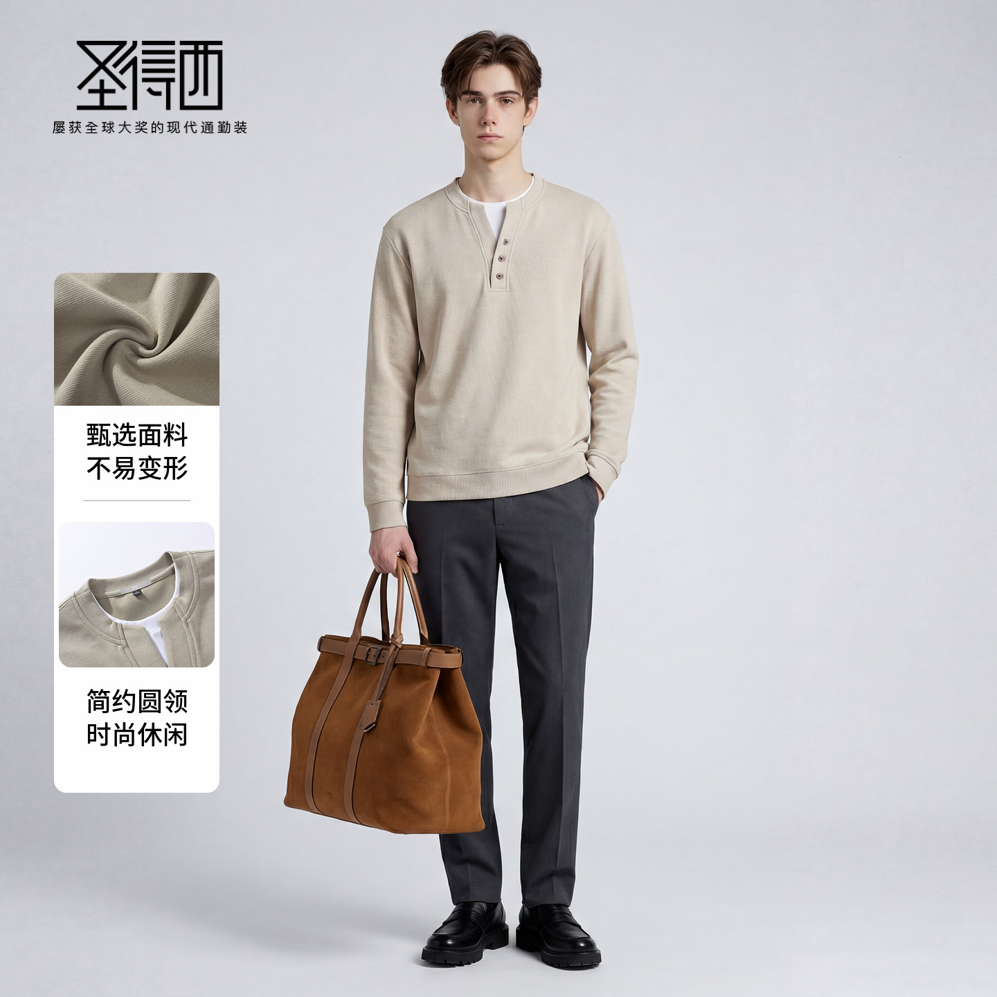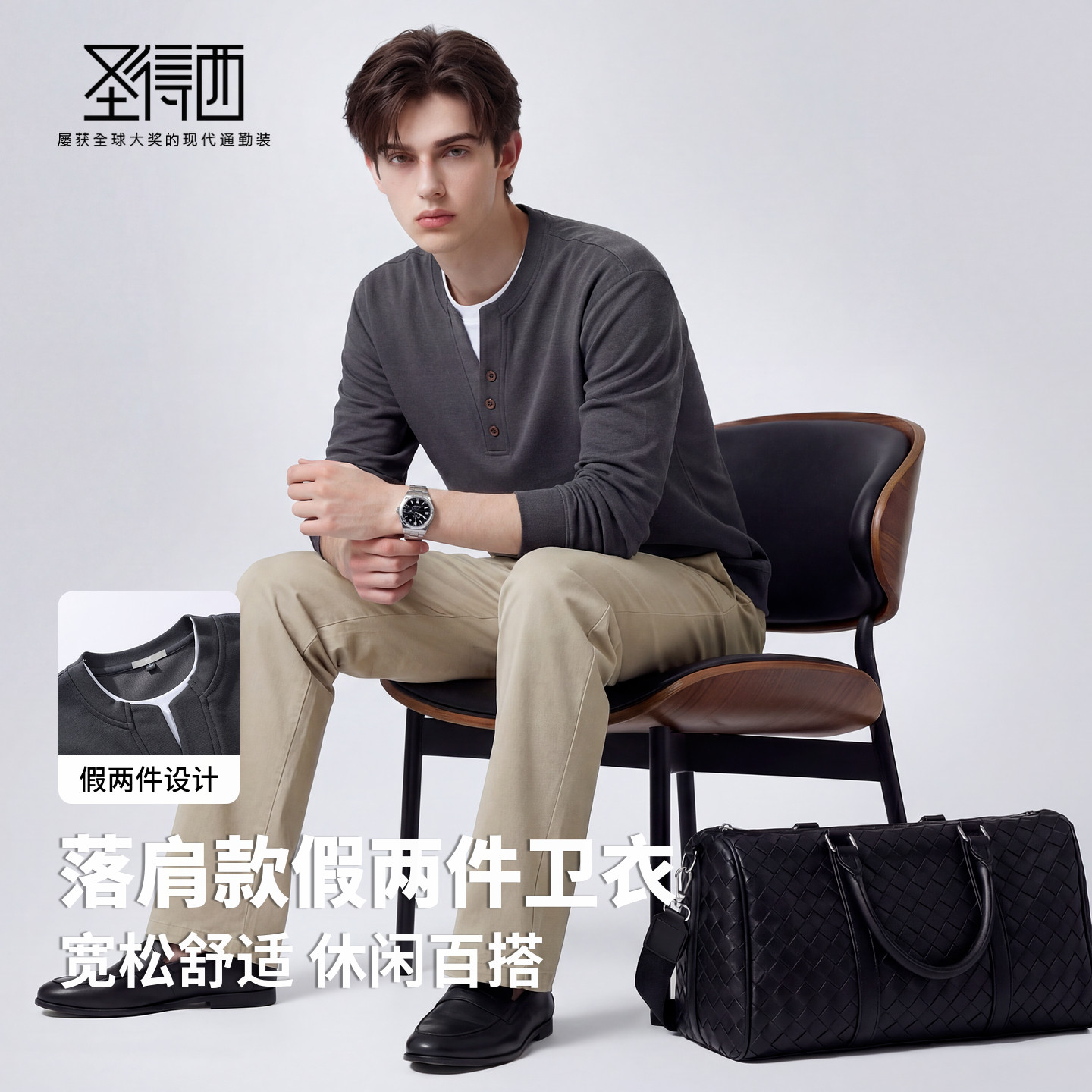 --------------------- 【舒适透气】圣得西2026年春季国潮落肩男款假两件卫衣套头针织衫 【原售价】539元 【现售价】233元 【推荐理由】