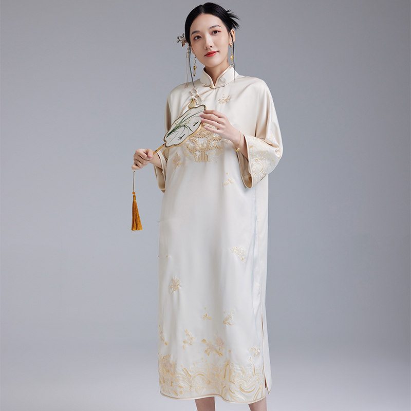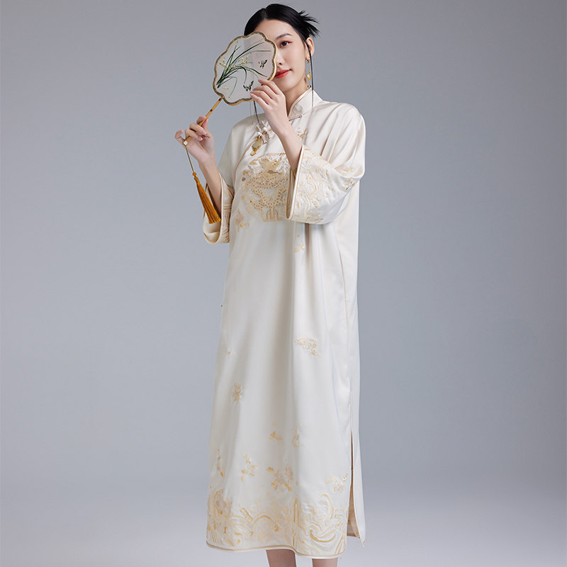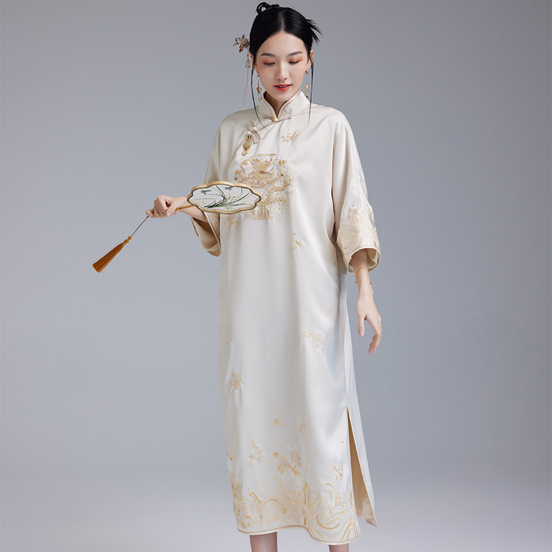陌遇2025春夏国潮新款复古改良绣花宽松旗袍中国风文艺茶服连衣裙