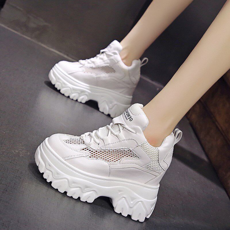 内增高女鞋夏小个子10cm小白鞋女2024新款网面透气厚底松糕老爹鞋