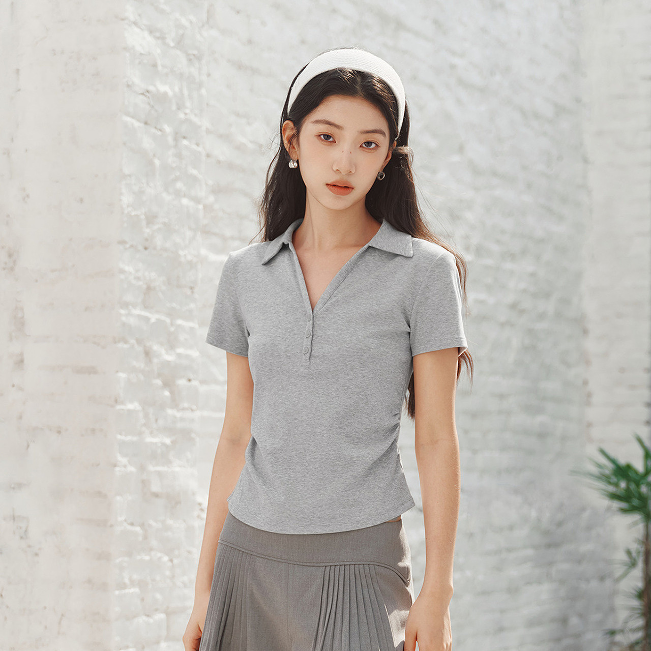 森马POLO衫女夏季短款褶皱紧身正肩凉感上衣2026新款百搭气质衣服