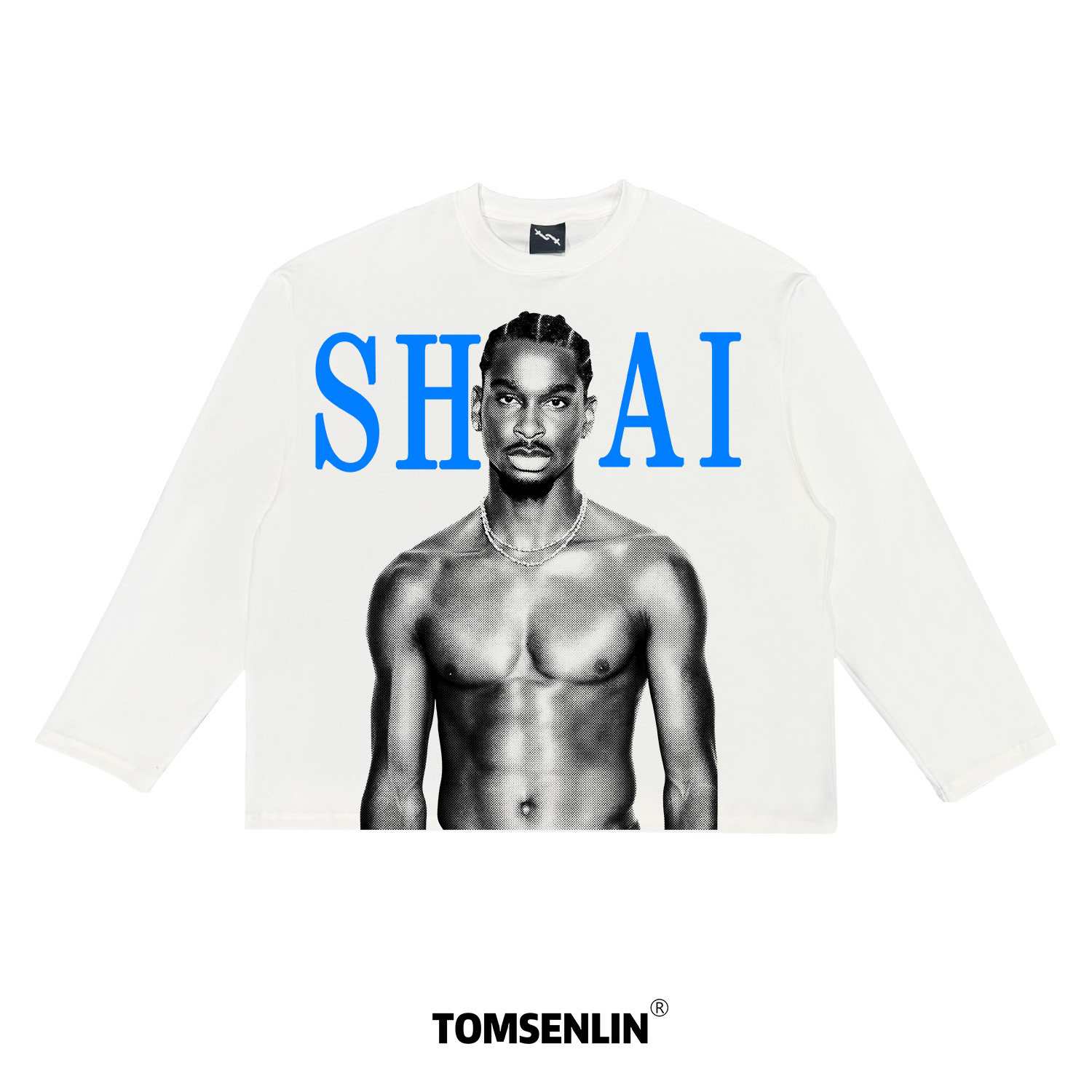 tomsenlin美式街头 亚历山大撞色网眼复古康丽印花宽短袖长袖T恤