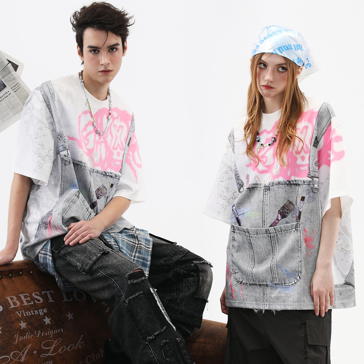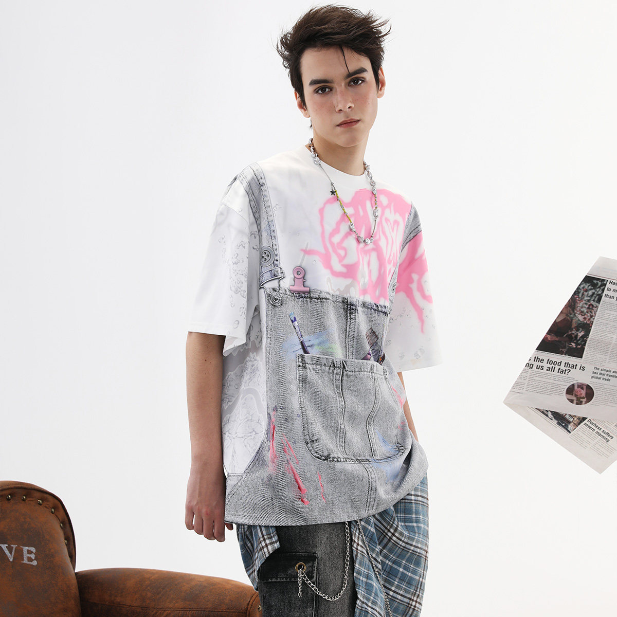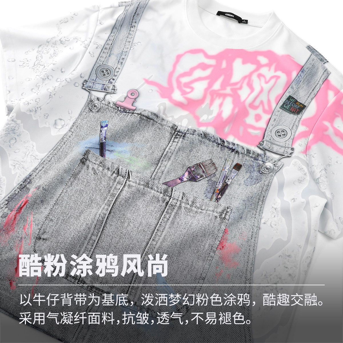 --------------------- 【明星同款】GENANX闪电潮牌夏新品短袖太空棉趣味设计假两件T恤 【原售价】169元 【现售价】148元 【推荐理由】