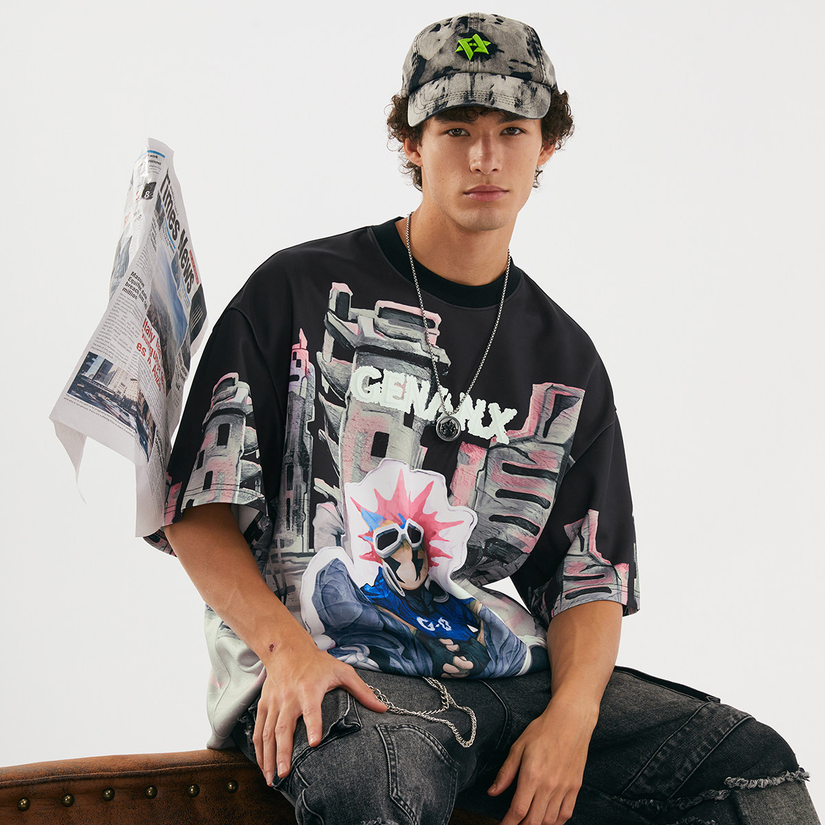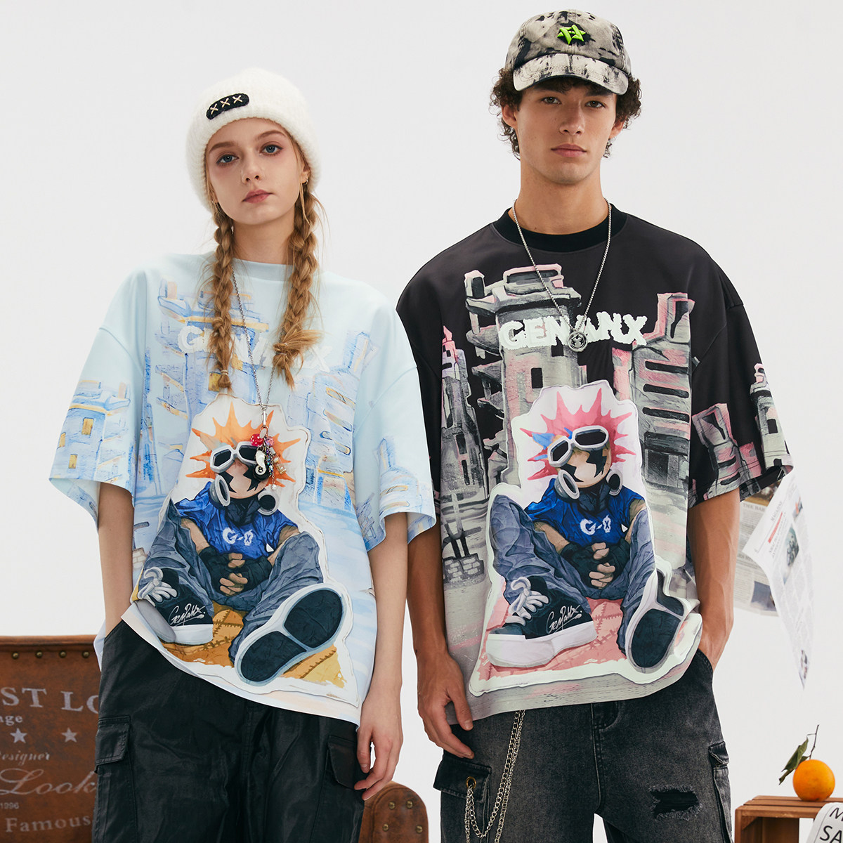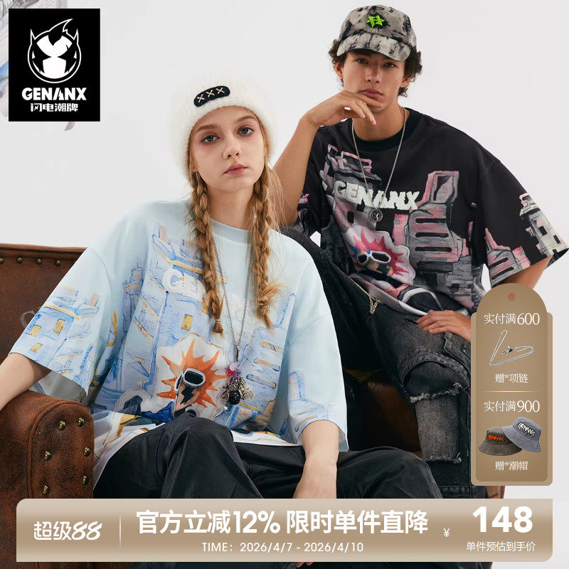 --------------------- GENANX闪电潮牌2025夏季新品上衣圆领透气宽松街头太空棉印花T恤 【原售价】169元 【现售价】148元 【推荐理由】