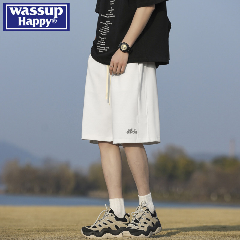 wassup happy休闲短裤男款2025夏季新款美式潮牌休闲百搭五分中裤