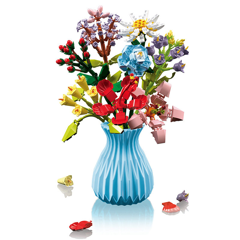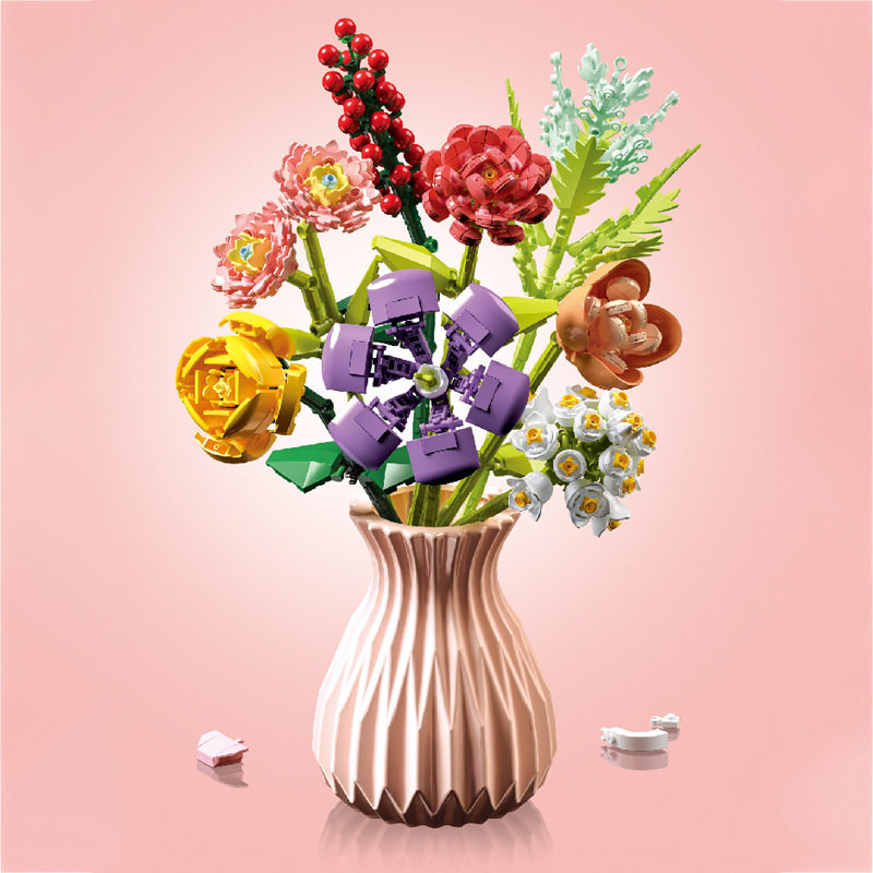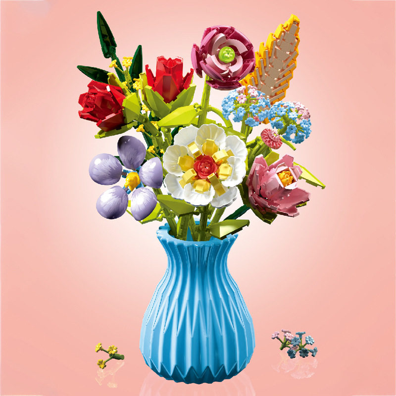 淘宝中国积木花瓶拼装花束仿真积木花朵塑料家居客厅装饰摆件情人礼物