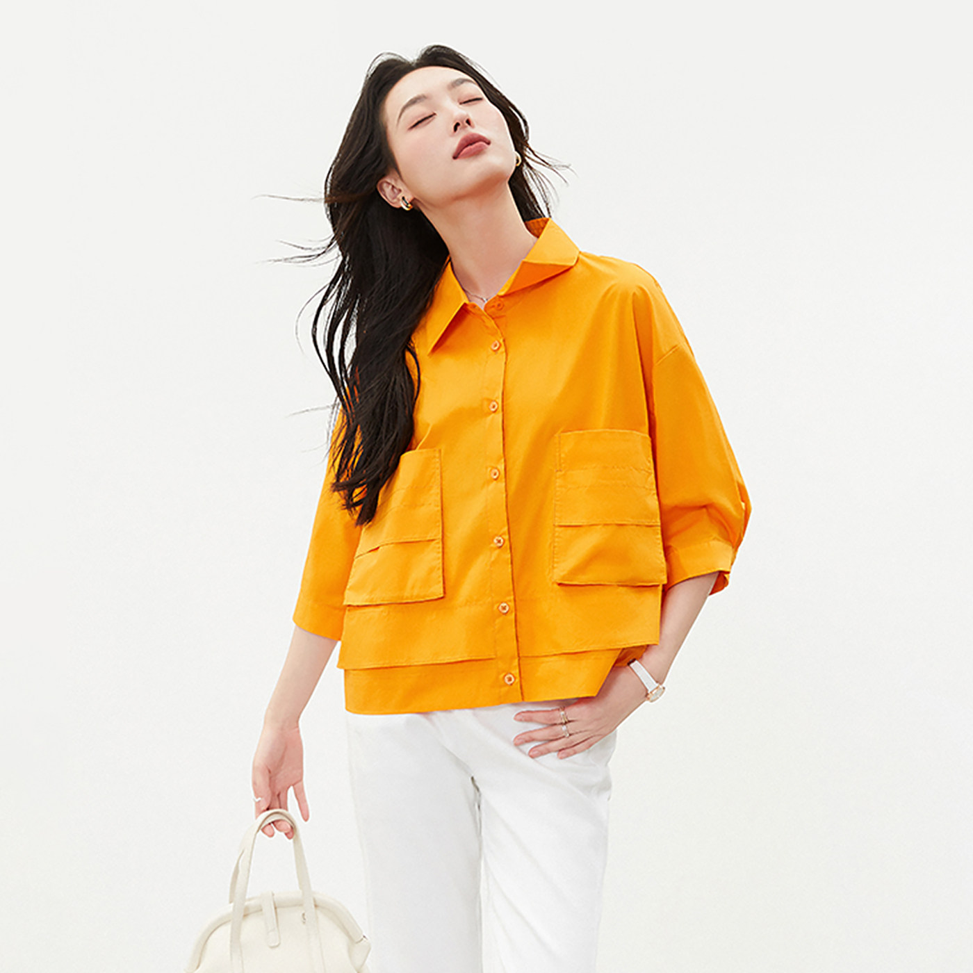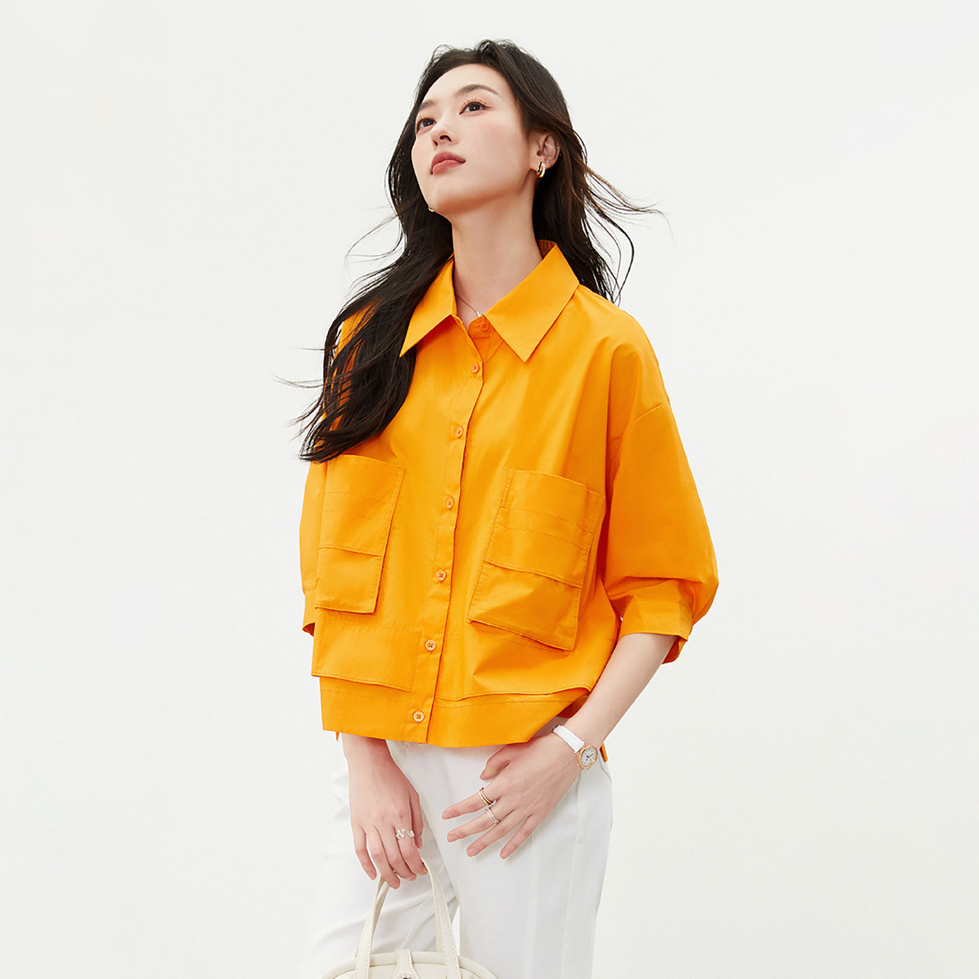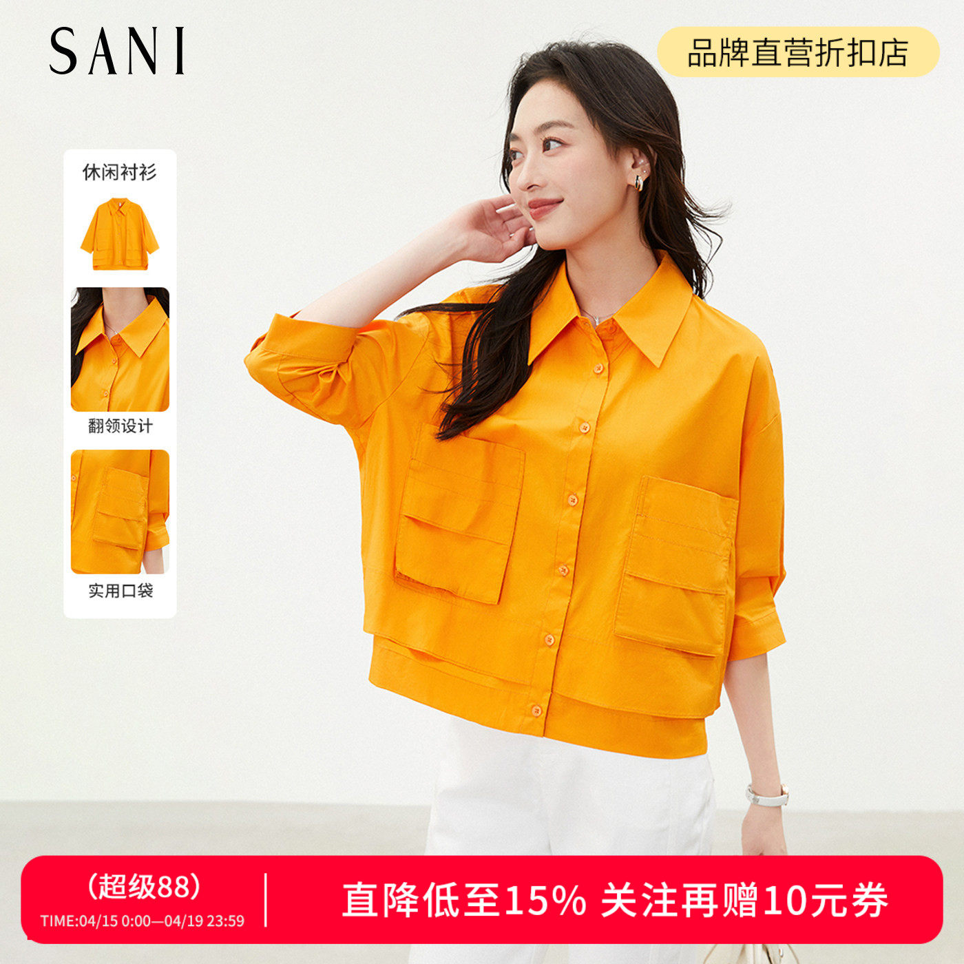 --------------------- SANI奥莱商场同款衬衣夏季抽绳小众设计口袋七分袖衬衫翻领上衣女 【原售价】799元 【现售价】242元 【推荐理由】