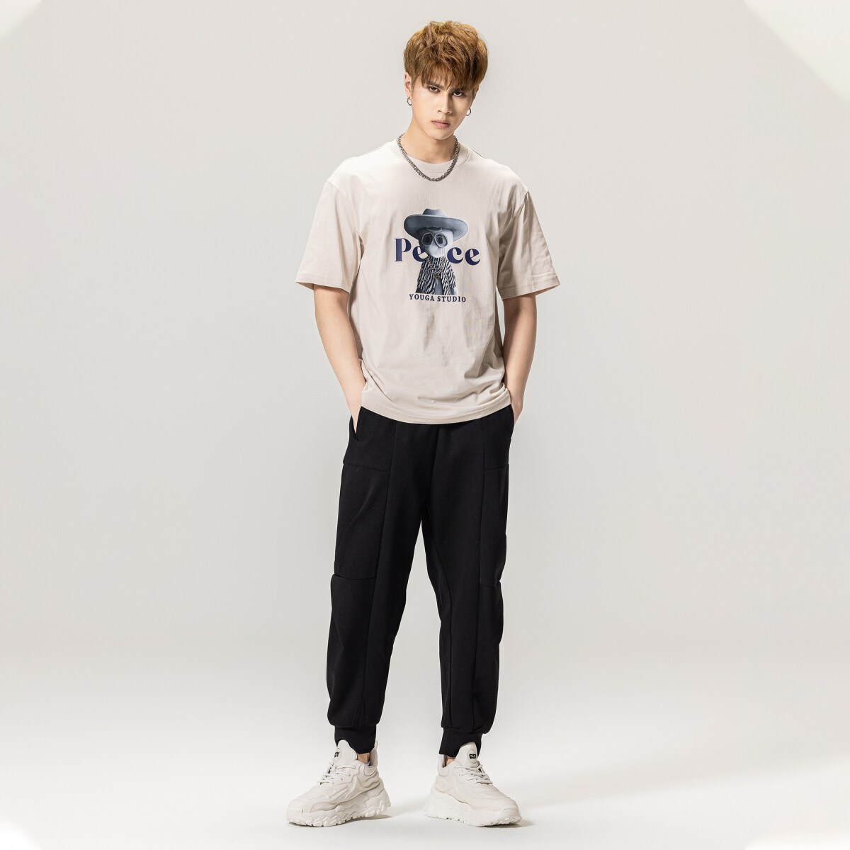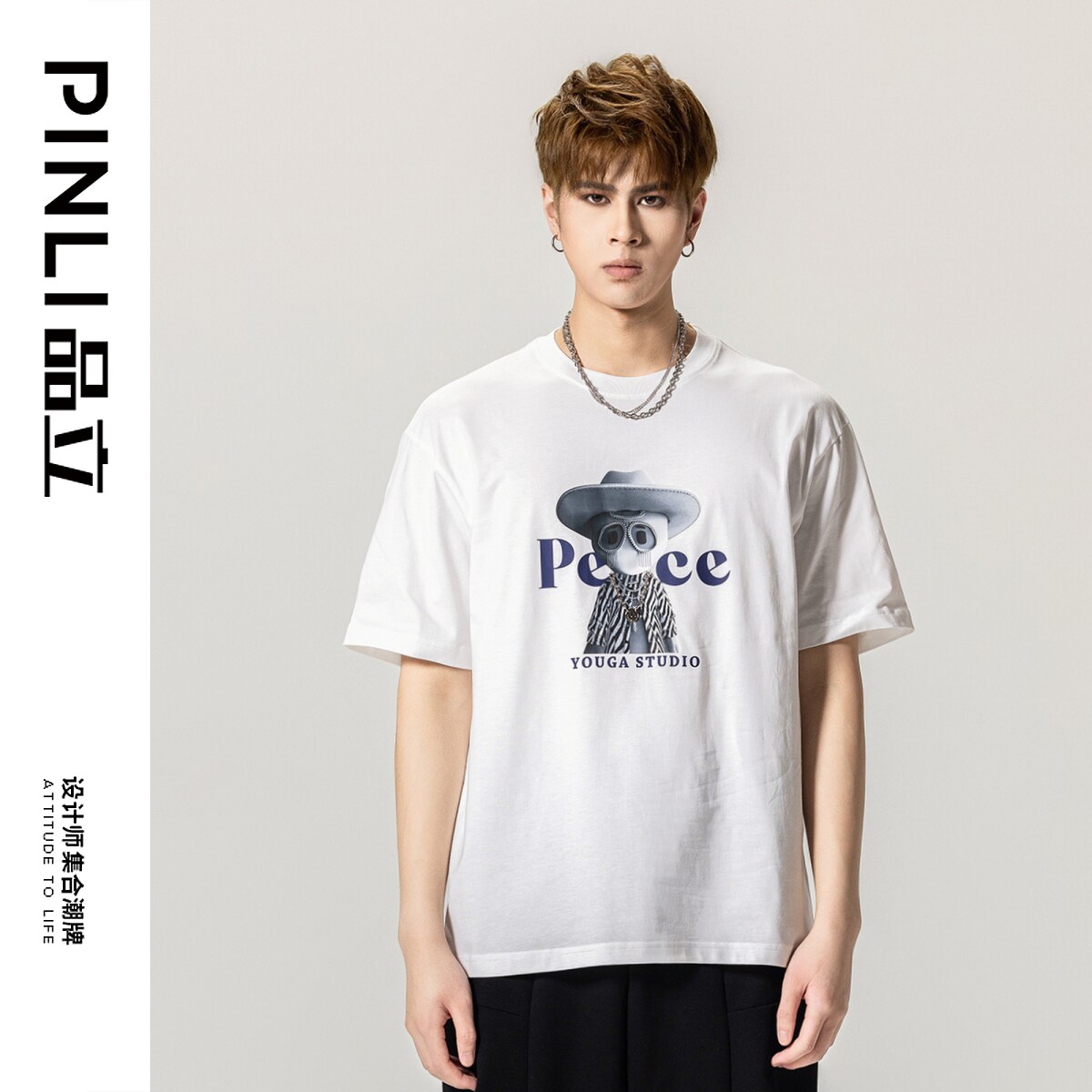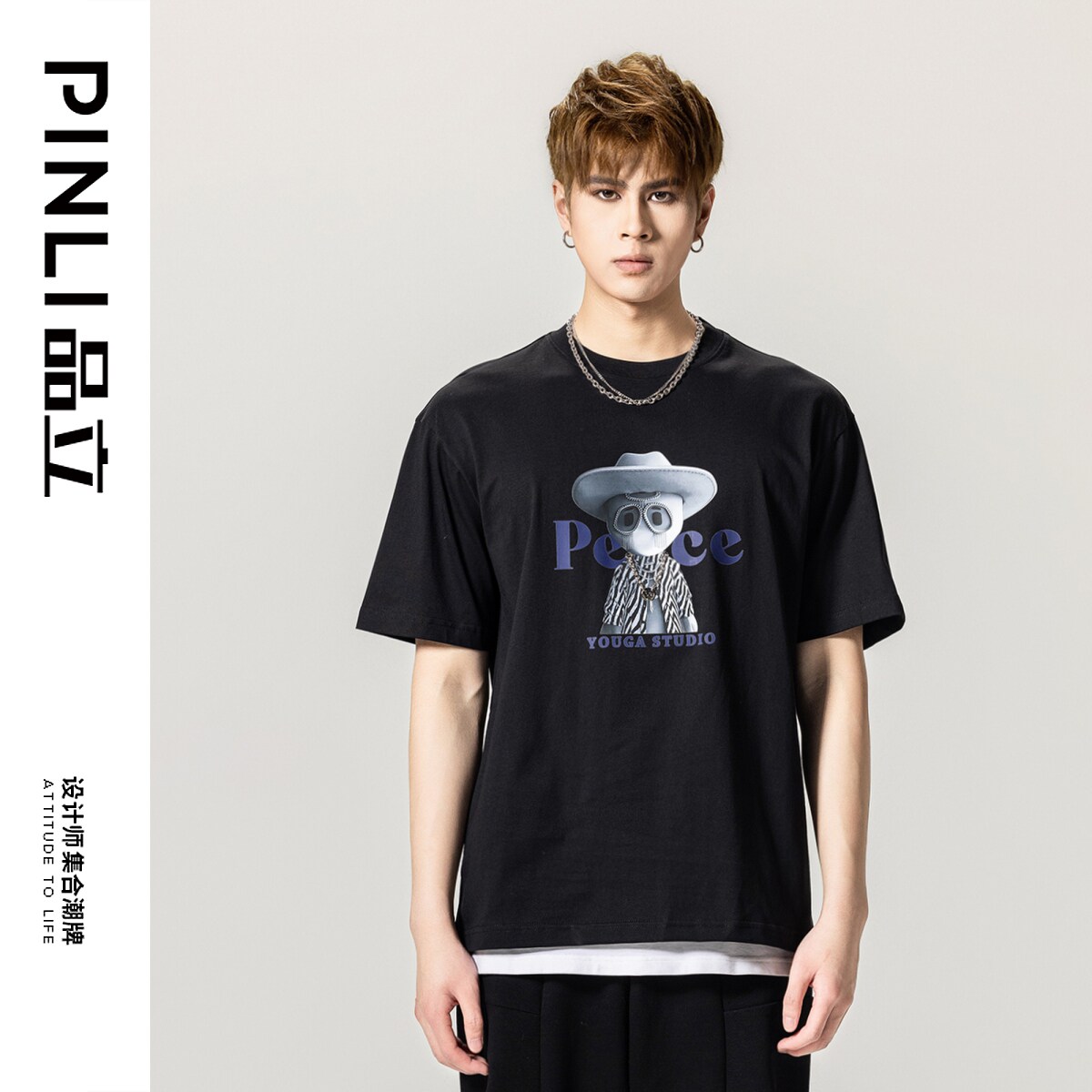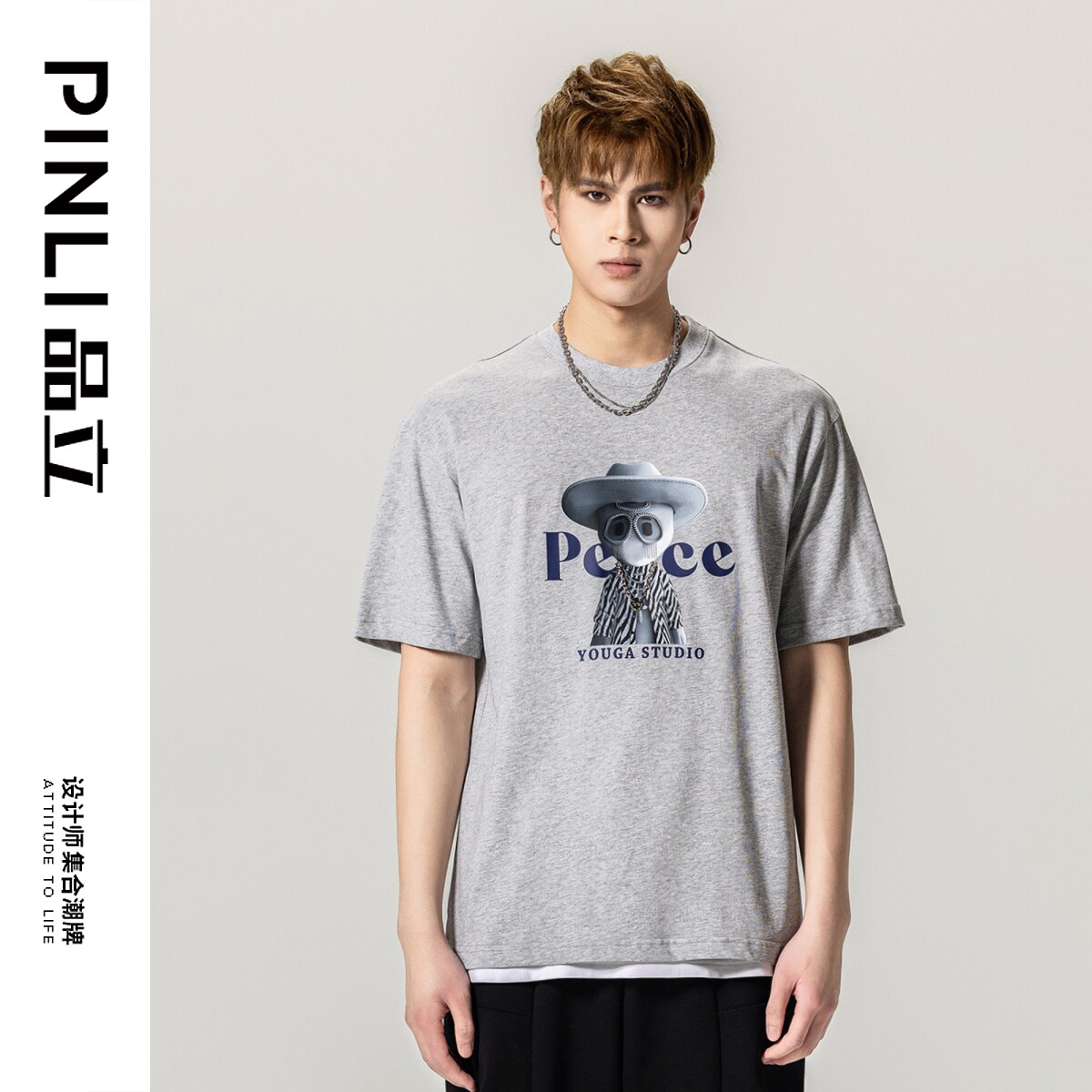 PINLI品立春季新款男士纯棉体恤印花短袖休闲T恤BG231111011