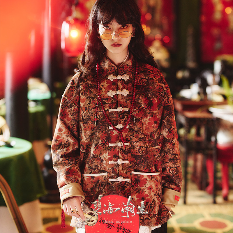 --------------------- 碧海潮生【万花】秋冬新款中国风国潮新中式麂皮绒印花唐装外套 【原售价】998元 【现售价】527元 【推荐理由】